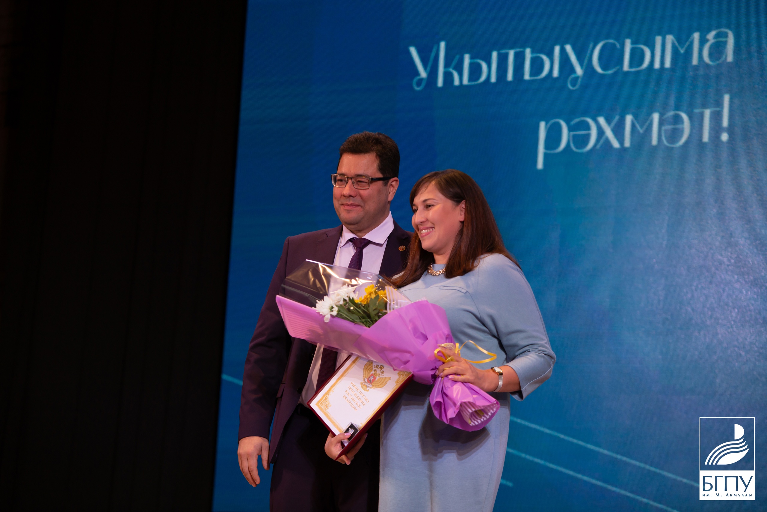 По традиции в праздничный день сотрудников и студентов вуза наградили благодарственными письмами и почетными грамотами Российской Федерации и Республики Башкортостан. Их вручили ректор БГПУ им. М. Акмуллы Салават Сагитов и  первый заместитель министра образования и науки Башкортостана Ильдар Мавлетбердин.
