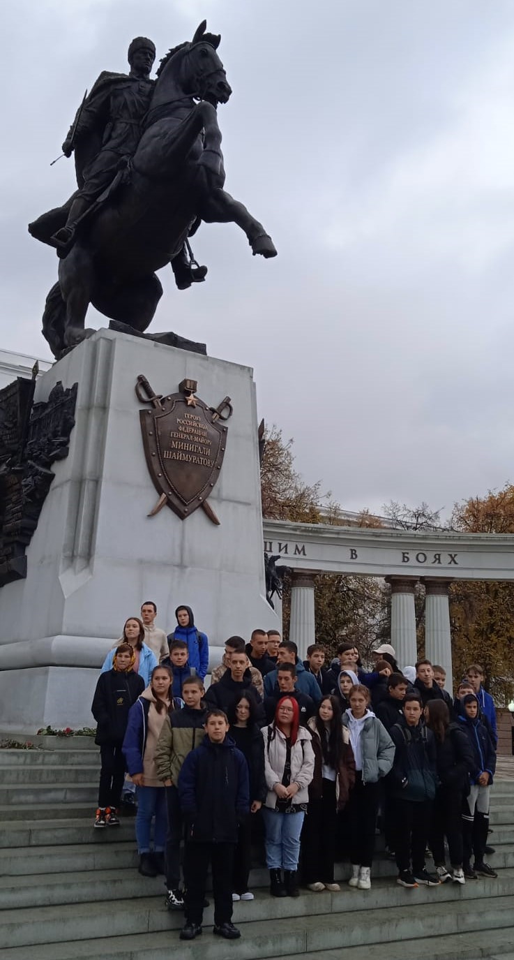 Далее заведующая кафедрой экологии, географии и природопользования естественно-географического факультета Галия Гильманова познакомила ребят с новой достопримечательностью нашей столицы - памятником Герою России, генерал-майору Минигали Шаймуратову