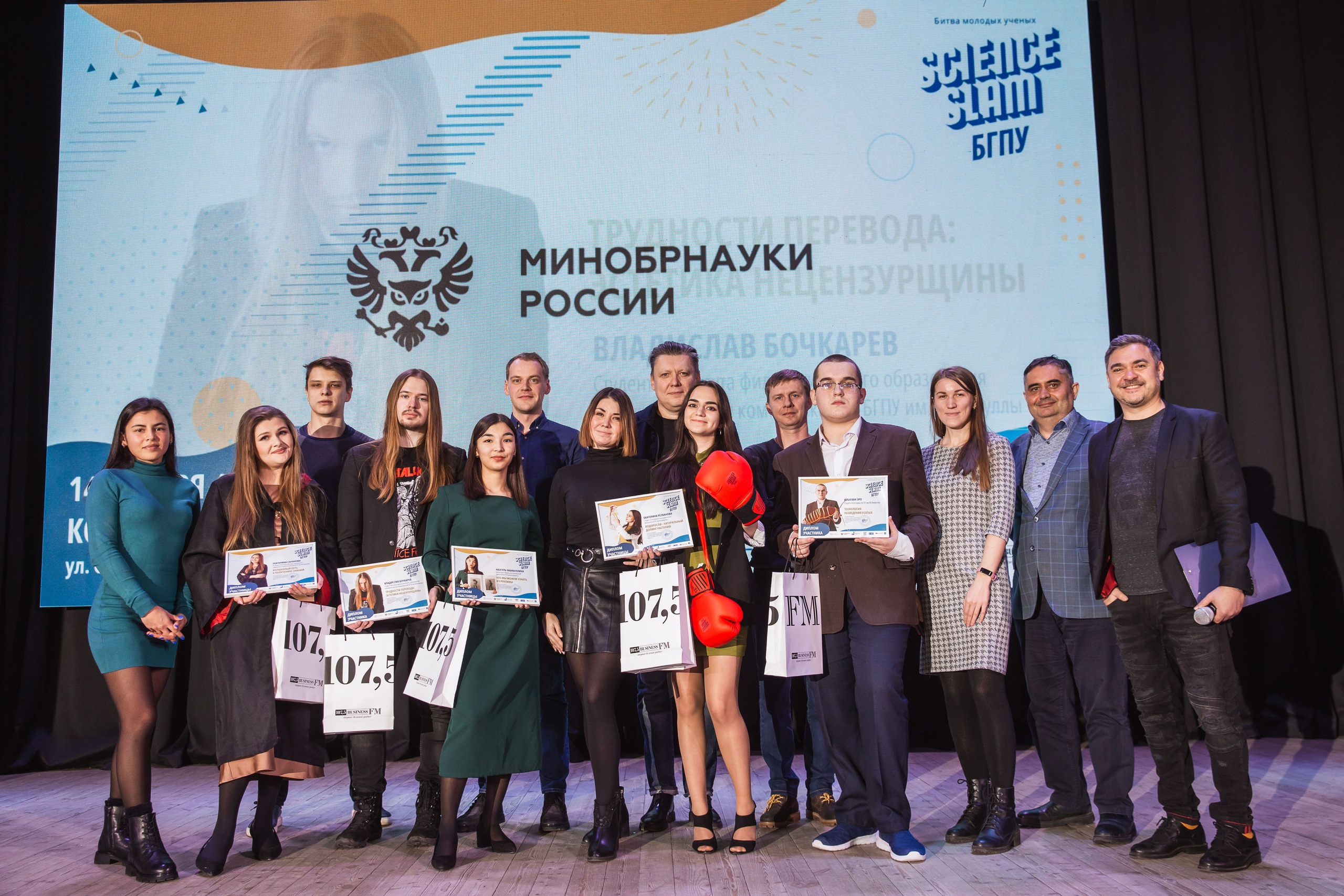 Каждый из них успешно выдержал тайминг, красочно представил свои исследования и область научных интересов. Победителя Science Slam БГПУ им. М. Акмуллы выбрали зрители аплодисментами, громкость которых организаторы замеряли шумомером. По итогам зрительская любовь и трофейные боксерские перчатки достались представительнице ЕГФ Екатерине Резвановой.