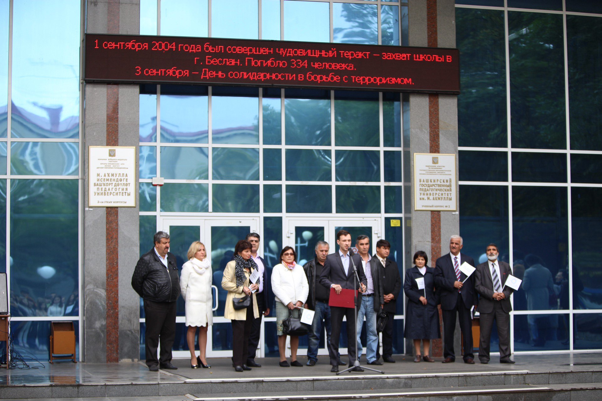 Студенческая молодежь помнит трагедию и скорбит вместе со всей страной. Так, 5 сентября Башкирский государственный педагогический университет им. М. Акмуллы совместно с Домом дружбы народов Республики Башкортостан организуют межвузовский флешмоб, посвященный Дню солидарности в борьбе с терроризмом. Участники мероприятия смогут зажечь свечи в память о погибших, запустить в небо воздушные шары, возложить цветы к памятному стенду «Герои Беслана», изготовить бумажных журавлей как символ надежды, веры.