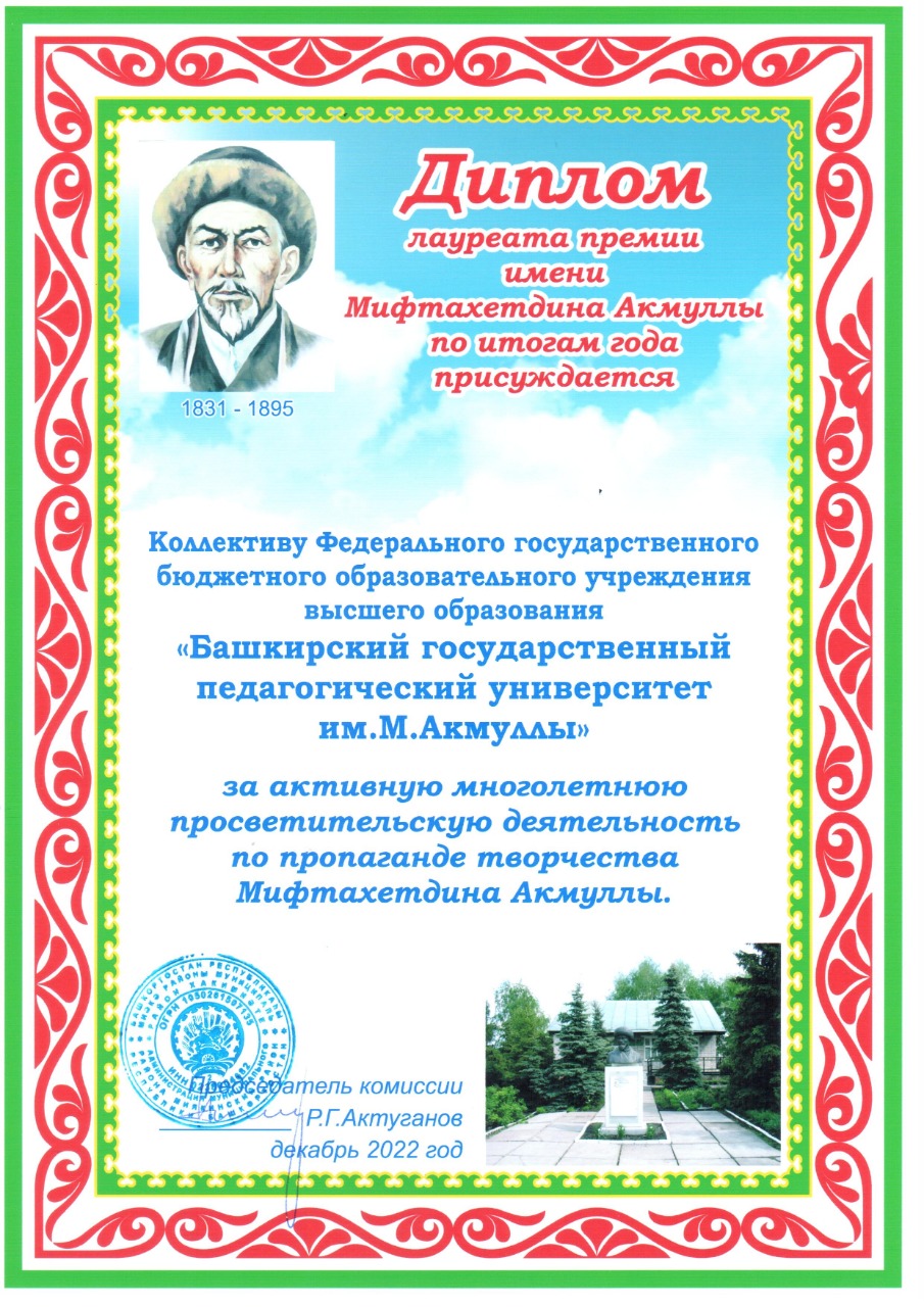 Башкирский государственный педагогический университет стал лауреатом премии имени Мифтахетдина Акмуллы