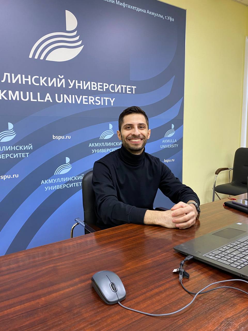 От лица БГПУ им. М.Акмуллы на фарси выступил Киан Мохаммадамин, который прошел все ступени образовательной программы вуза и закончил аспирантуру по специальности «Физическая химия» в 2021 году. На сегодняшний день Киан Мохаммадамин является младшим научным сотрудником кафедры физики и нанотехнологий Башгоспедуниверситета. В своем выступлении он рассказал о структуре Акмуллинского университета, направлениях и особенностях приема иностранных студентов, также ответил на вопросы абитуриентов из Ирана.