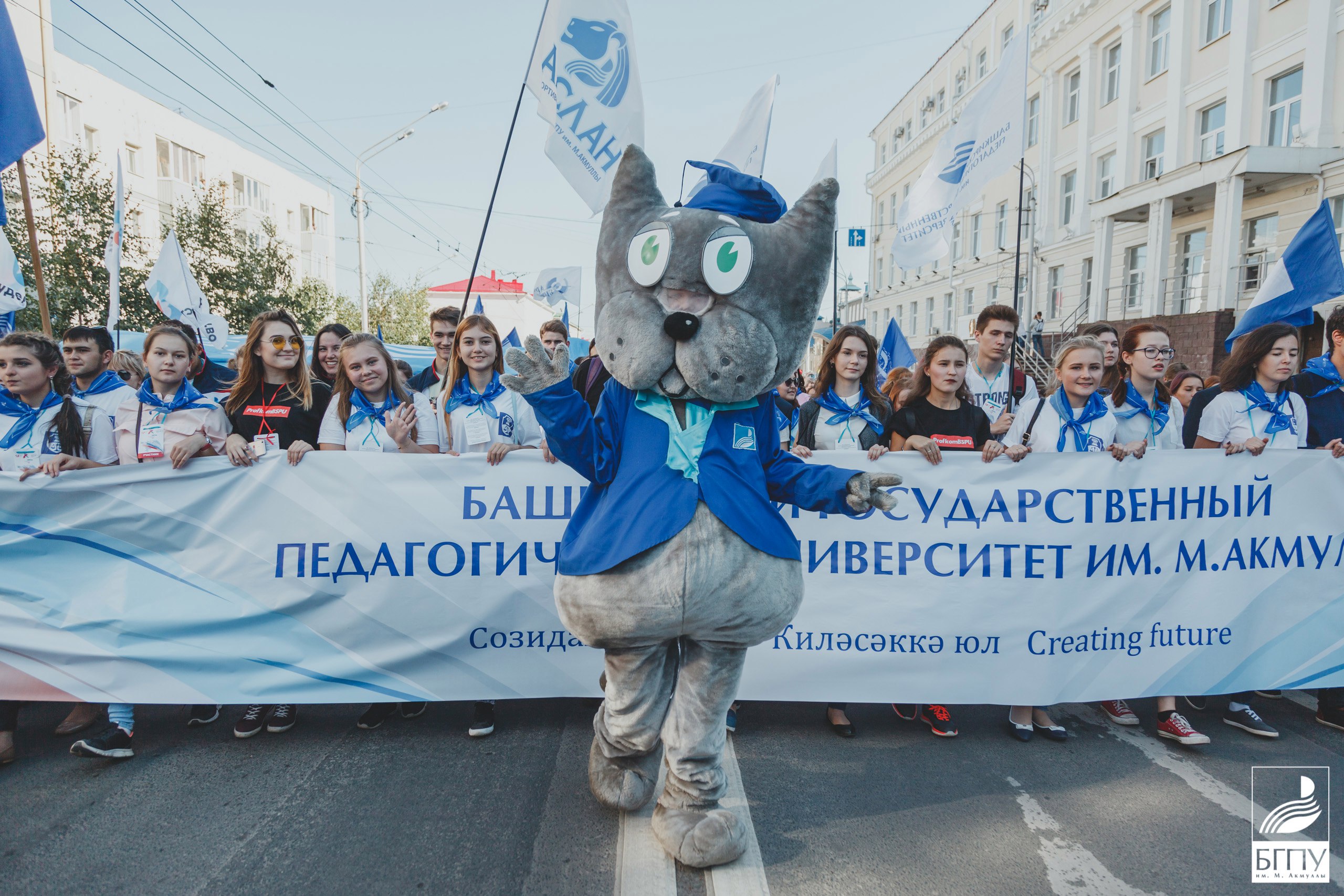 В Уфе вчерашние школьники, а ныне студенты-первокурсники, единой колонной прошли от Советской площади до парка «Ватан» по улицам Советской, Заки Валиди и Карла Маркса. Колонну БГПУ им. М. Акмуллы возглавил символ вуза – профессор Котофф.