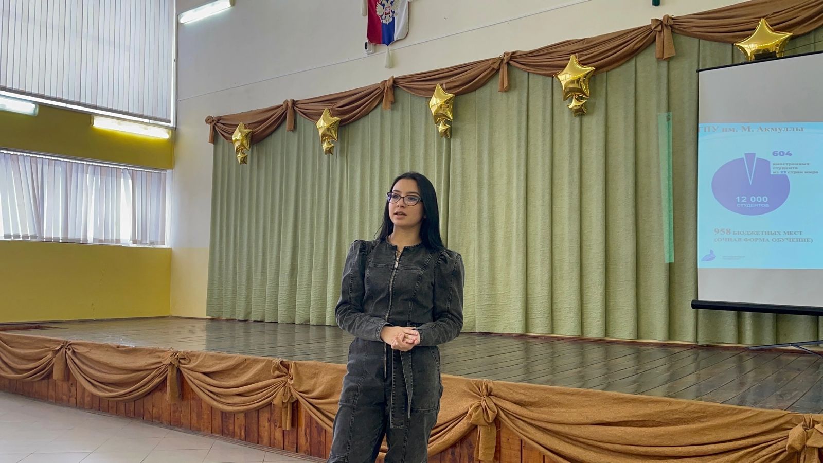 Ответственная по трудоустройству Колледжа БГПУ им. М.Акмуллы ЛуизаЗайнуллина выступила перед учащимися с презентацией Акмуллинского колледжа, рассказала о его специальностях, условиях поступления и обучения, а также о перспективах развития современных профессий.