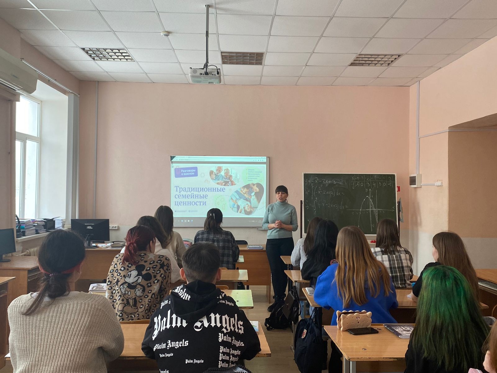 В Конституции Российской Федерации закреплено понятие семьи как союза мужчины и женщины. Слушателям рассказали, что особое значение на государственном уровне имеет поддержка отцовства, материнства и детства. Семья, состоящая из родителей и нескольких детей, является основой российского общества. На федеральном и региональном уровнях реализуются программы, направленные на поддержку молодых и многодетных семей.