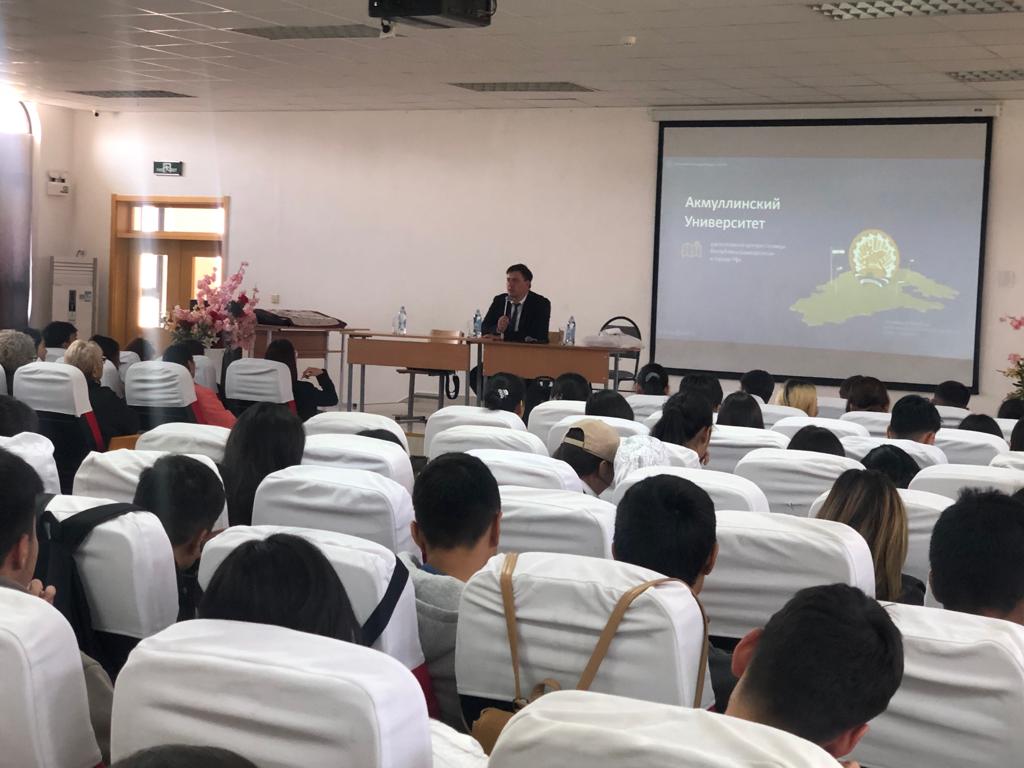 Заключительным этапом поездки стало посещение центральных регионов страны, где начальник Управления международных связей Радик Юлбаев провел профориентационные встречи с выпускниками школ города Бишкек и Нарынской области.