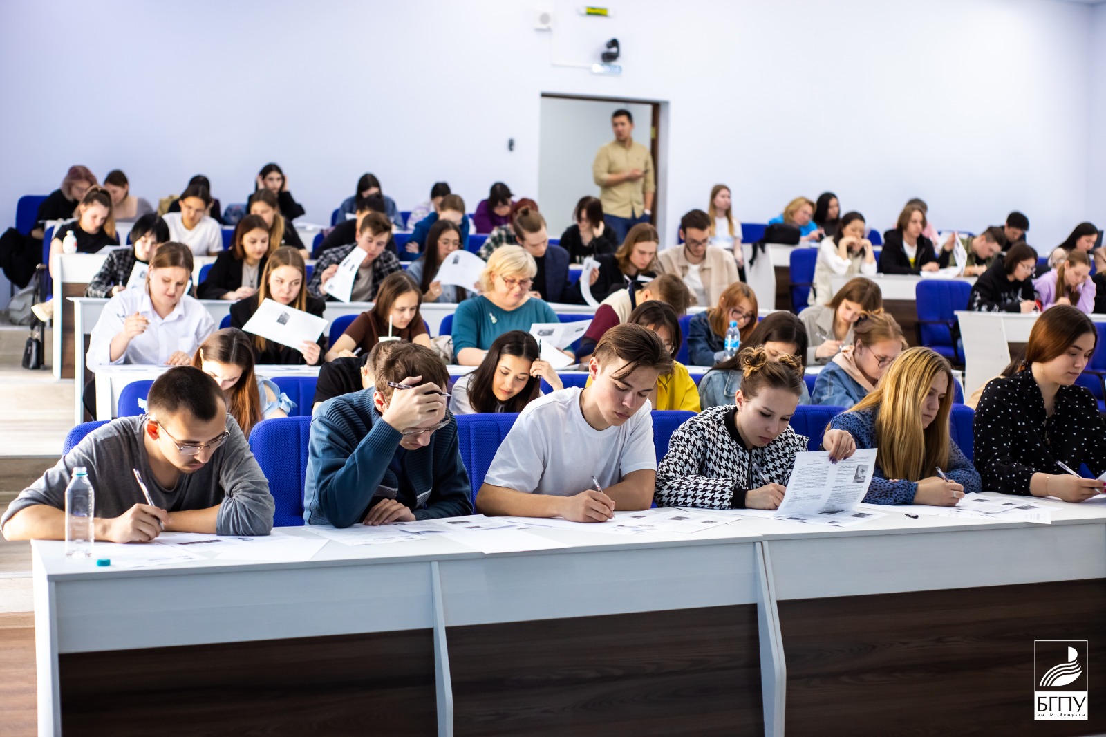 Более 150 студентов БГПУ имени Акмуллы во главе с ректором университета Салаватом Сагитовым разместились на двух площадках 3-го корпуса, чтобы проверить свои знания по истории родного Отечества. «Знать, чтобы помнить» - под таким девизом проходит Международная акция «Диктант Победы». Сегодня, 27 апреля, участников акции приветствовали даже космонавты МКС, пожелавшие успешного написания диктанта.