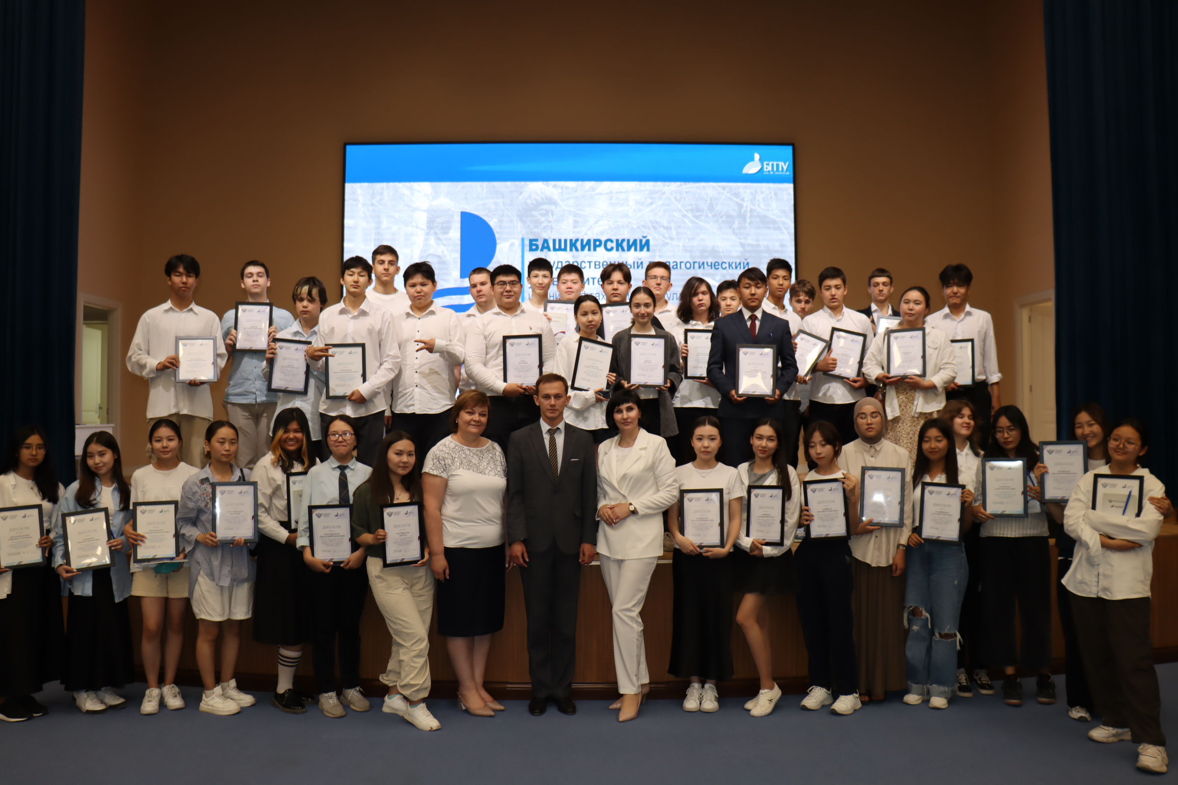 В ходе праздничной церемонии ректор БГПУ им. М.Акмуллы  Салават Сагитов в видеоприветствии поздравил участников конференции, 50 победителей и активистов Акмуллинской олимпиады по русскому языку. Далее состоялось торжественное награждение победителей Олимпиады, ребята получили почетные дипломы за подписью заместителя министра просвещения Российской Федерации Дениса Грибова вместе с памятными сувенирами из рук атташе по образованию и науке Посольства России в Киргизской Республике Роберта Федорова.