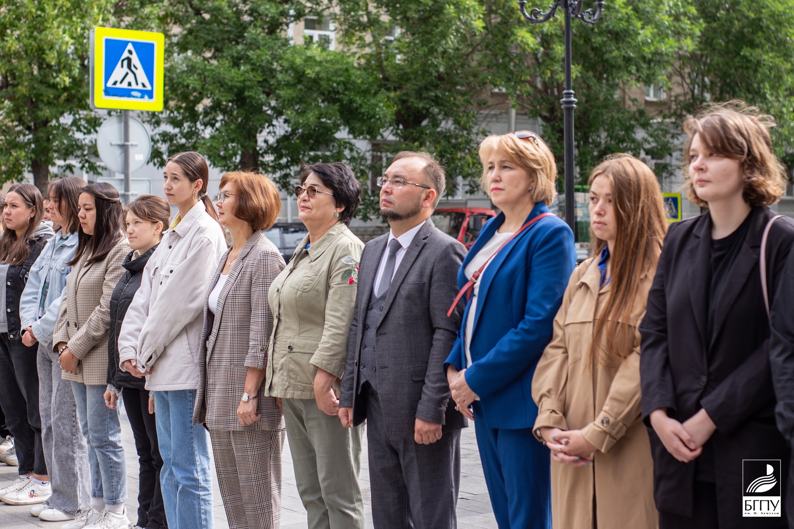 12 июня в Акмуллинском университете состоялась торжественная церемония поднятия государственного флага Российской Федерации и флагов Республики Башкортостан, Министерства просвещения России и БГПУ имени М.Акмуллы. В ней приняли участие студенты и преподаватели факультета башкирской филологии.