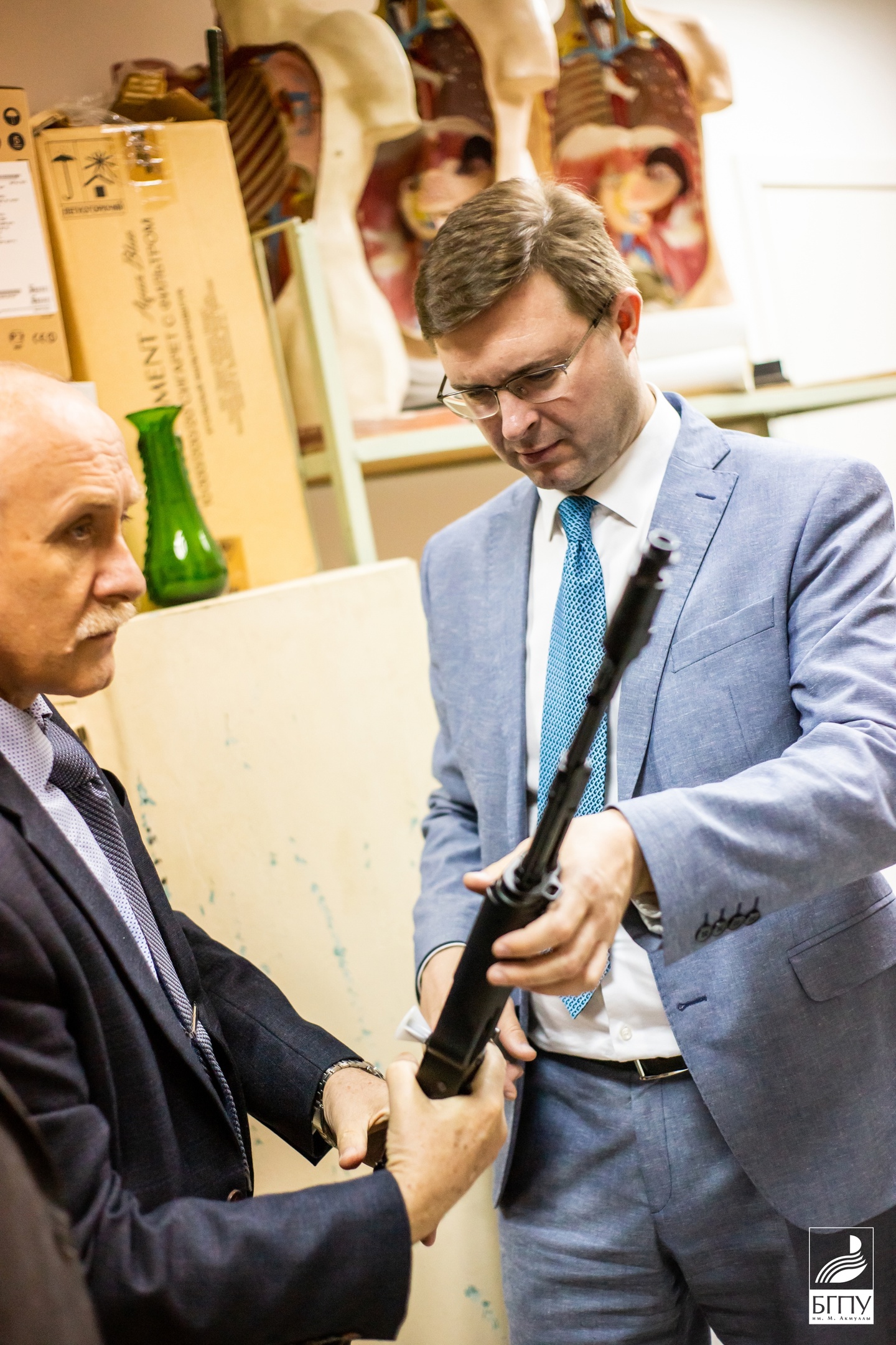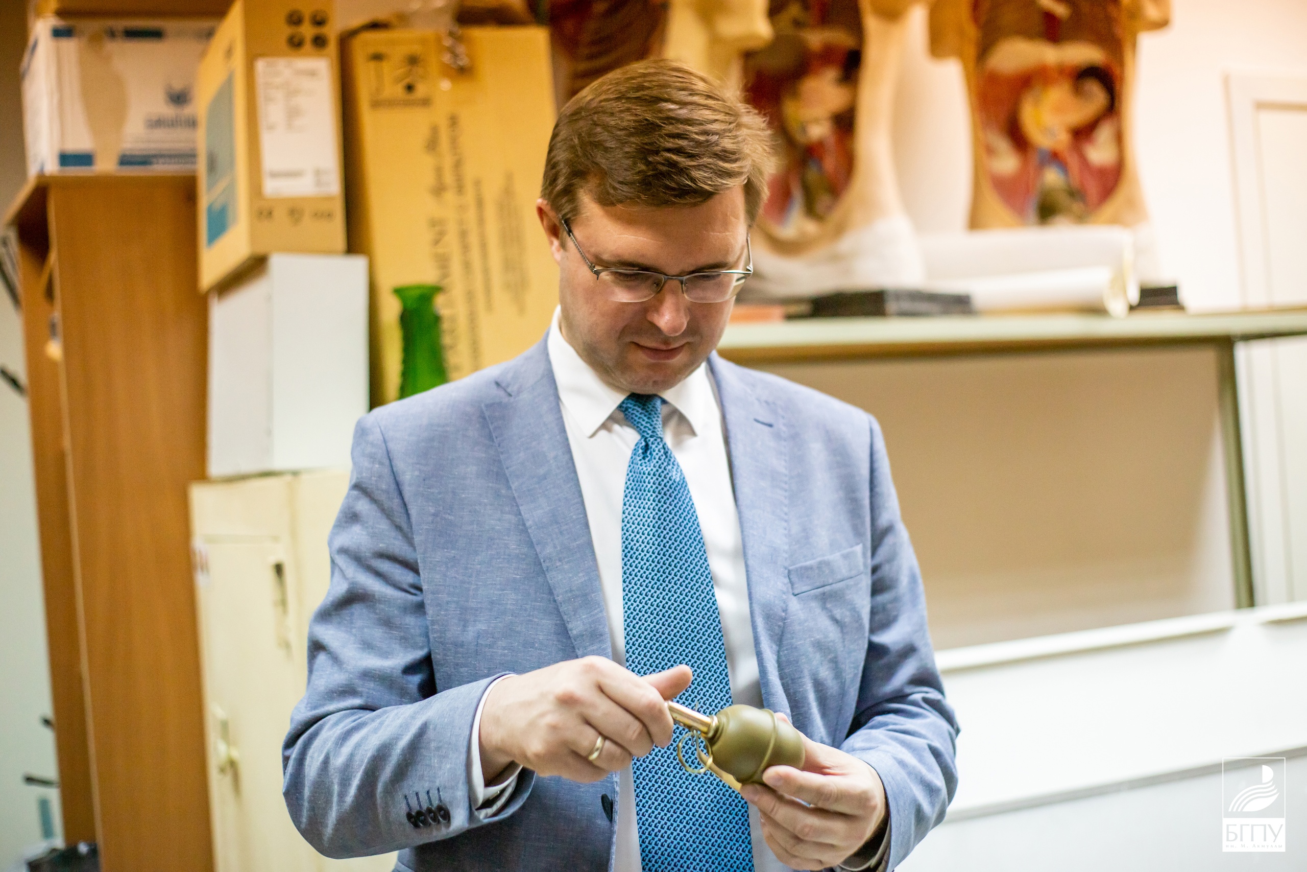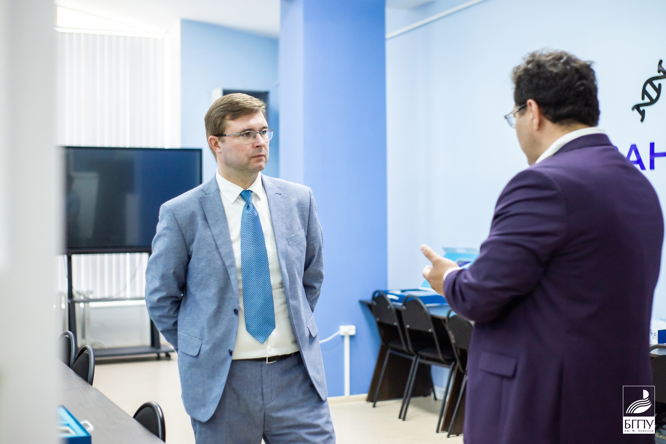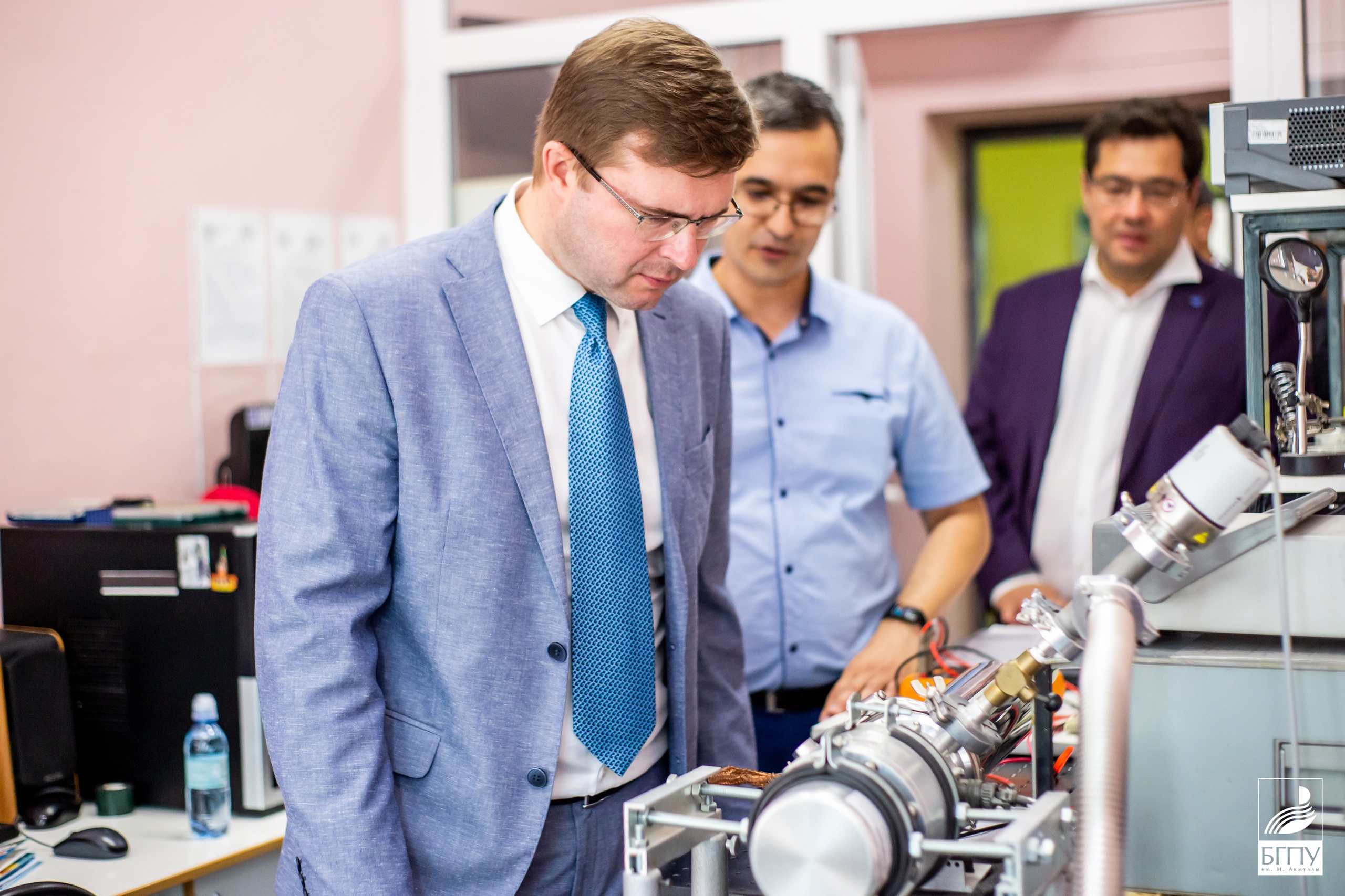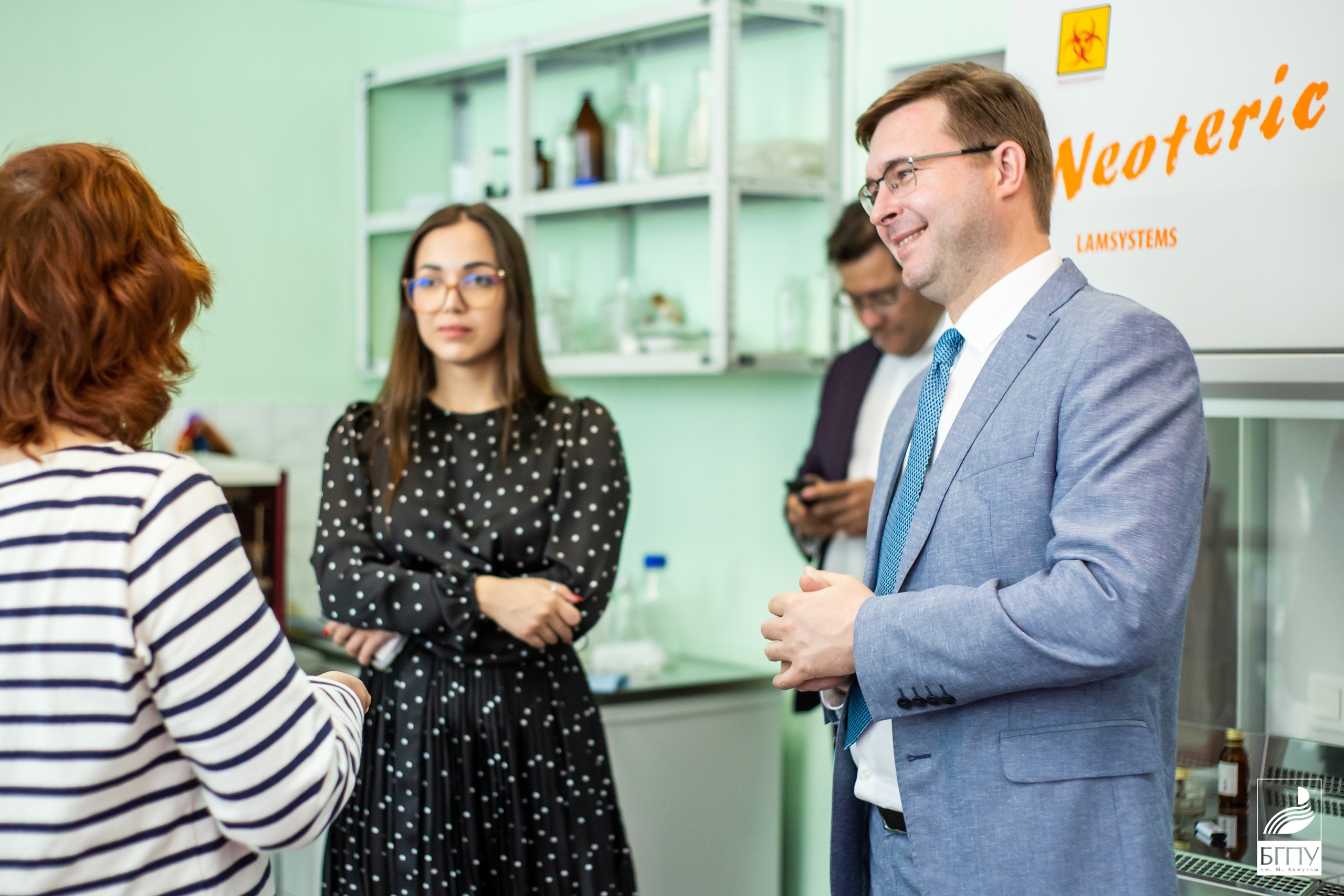 Замминистра просвещения посетил кабинет безопасности жизнедеятельности, осмотрел оборудование и отметил особую важность этого предмета. На естественно-географическом факультете Корнеев посетил научно-образовательную лабораторию «Центр молекулярных и биотехнологических технологий», научно-исследовательскую лабораторию альгологов. Альгологи продемонстрировали экологичный биостимулятор роста растений на основе водоросли хлореллы вульгарис. В научно-исследовательской лаборатории вуза биостимулятор получили в виде суспензии, которая может стать серьезной альтернативой применению химических удобрений. Также заместитель министра осмотрел аудитории для демоэкзаменов, которые дают возможность для объективной оценки педагогических компетенций будущих учителей.