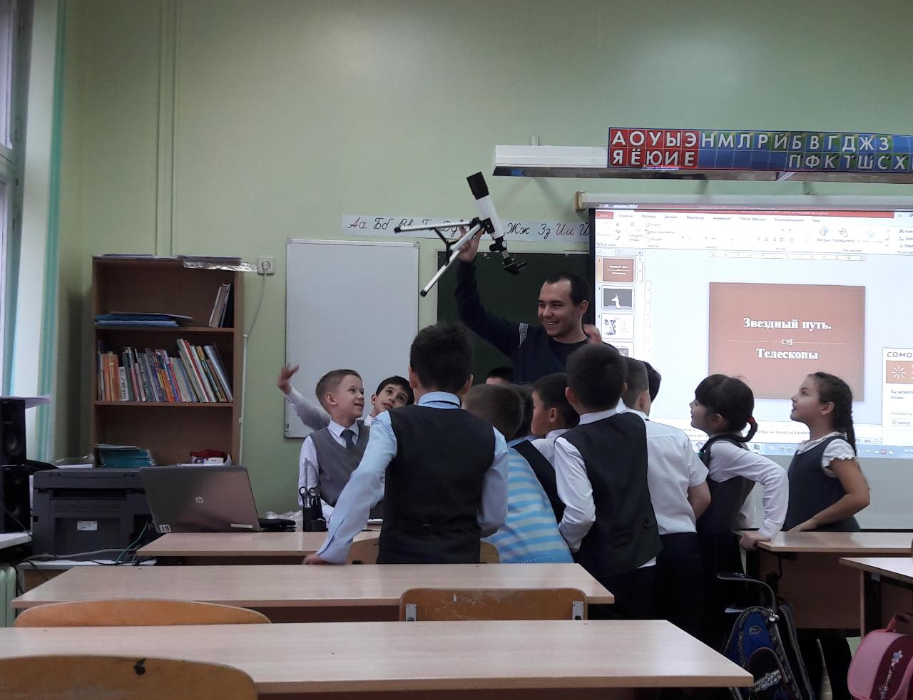 В рамках популяризации астрономии и физики, в МБОУ "Школа № 45 с углубленным изучением отдельных предметов" прошел мастер-класс для учащихся начальных классов по астрономии на тему "Звездный путь. Телескопы". В рамках данного мероприятия школьники узнали о современных телескопах и новейшими технологиями наблюдении за Вселенной. Совершили «полёт» по планетам Солнечной системы. Погода помешала наблюдениям за Солнцем, но школьники с интересом слушали лекцию об устройстве телескопа. Провели пробную настройку по близлежащим объектам. Надеемся, что эти знания расширят кругозор, сформируют знание о мире, помогут детям определить свой путь в жизни, дадут возможность саморазвитию.