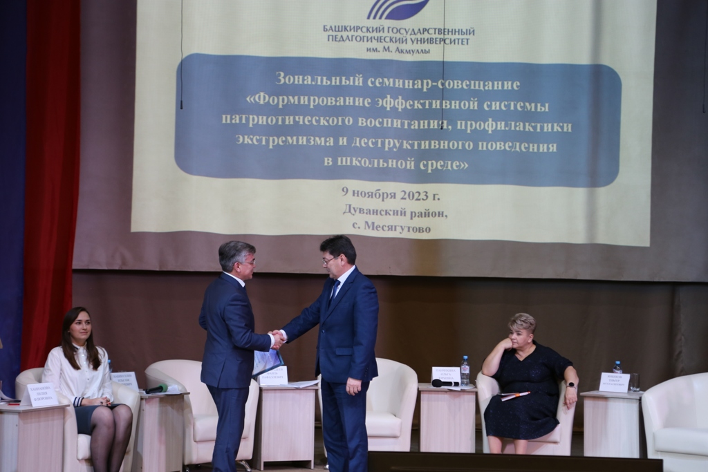 9 ноября 2023 года в Месягутово прошел V зональный семинар-совещание «Формирование эффективной системы патриотического воспитания, профилактики экстремизма и деструктивного поведения в школьной среде». Организатором его выступил Координационный центр по противодействию идеологии терроризма и экстремизма БГПУ имени Акмуллы. Участниками мероприятия стали  более 120 заместителей директоров по воспитательной работе образовательных учреждений Белокатайского, Дуванского, Кигинского, Мечетлинского и Салаватского районов Республики Башкортостан.