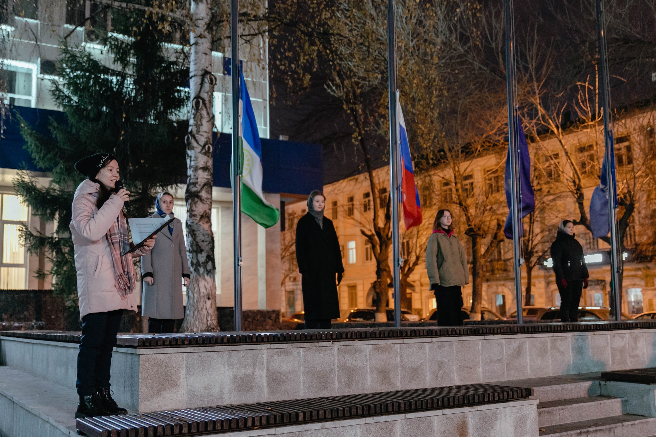 13 ноября в Башкирском государственном педагогическом университете им. М. Акмуллы состоялась торжественная церемония поднятия государственного флага Российской Федерации и флагов Республики Башкортостан, Министерства просвещения России и Акмуллинского университета.