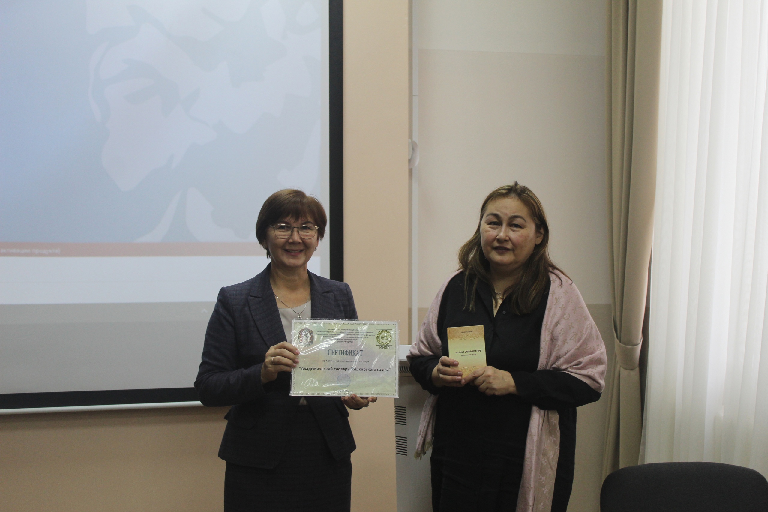 Рашит Закирович передал в дар родному факультету, на котором проработал пятнадцать лет, свою новую книгу «Жемчужное ожерелье. Короткие стихи» и сертификат на получение многотомного словаря «Академический словарь башкирского языка».
