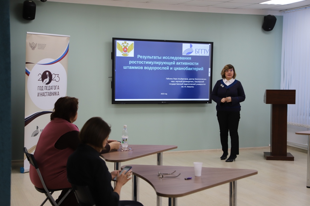 Доцент кафедры биоэкологии и биологического образования БГПУ имени М. Акмуллы, кандидат биологических наук Альфия Фазлутдинова рассказала о том, как можно использовать  изучение водорослей и цианобактерий в школьной практике и поделилась опытом проведения курсов повышения квалификации, которые прошли  для школ республики.