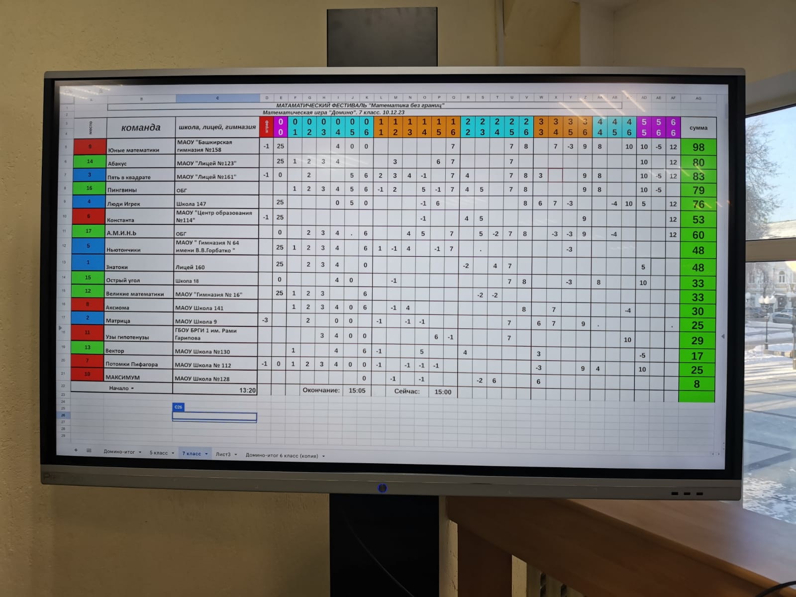 Среди 7 классов на следующий этап прошли команды: