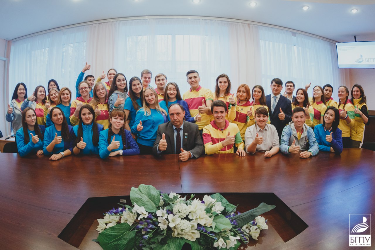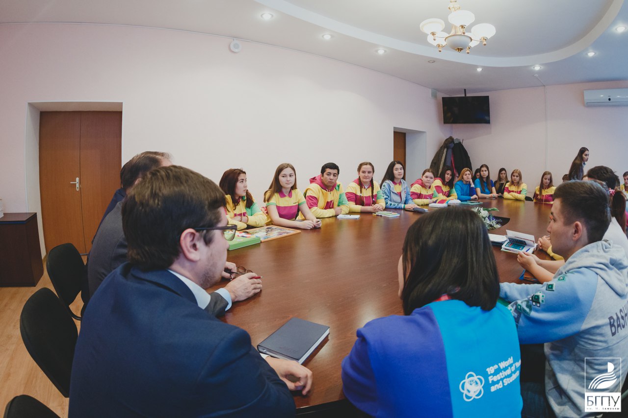 31 октября 2017 года в конференц-зале БГПУ им. М. Акмуллы состоялась встреча участников и волонтёров Всемирного фестиваля молодёжи и студентов с ректором БГПУ им. М. Акмуллы, профессором Р. М. Асадуллиным. Раиль Мирваевич поздравил студентов и сотрудников вуза с успешным участием в фестивале: «Надеюсь, что свежие идеи участников помогут сохранить дух фестиваля и в нашей студенческой аудитории, а студенческое братство сумеет реализовать новые важные молодежные инициативы…» Делегация БГПУ им. М. Акмуллы поделилась своими впечатлениями о поездке в г. Сочи. Также обучающиеся рассказали о проектах, которые планируют претворить в жизнь: «Школа предпринимателей», телемосты с зарубежными вузами, «English club» для волонтёров и студентов, турнир по национальным видам спорта, интерактивный кабинет истории и другие. Студенты вручили ректору БГПУ им. М. Акмуллы Р. М. Асадуллину сувениры с фестиваля, Раиль Мирваевич, в свою очередь, передал каждому авторскую книгу «Педагогика. Недосказанное».