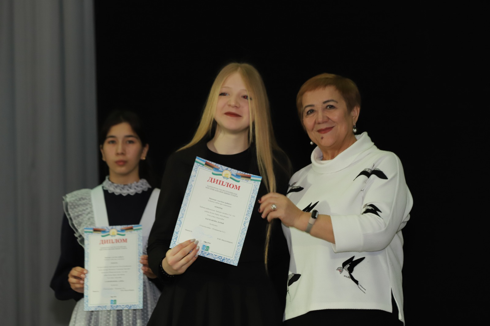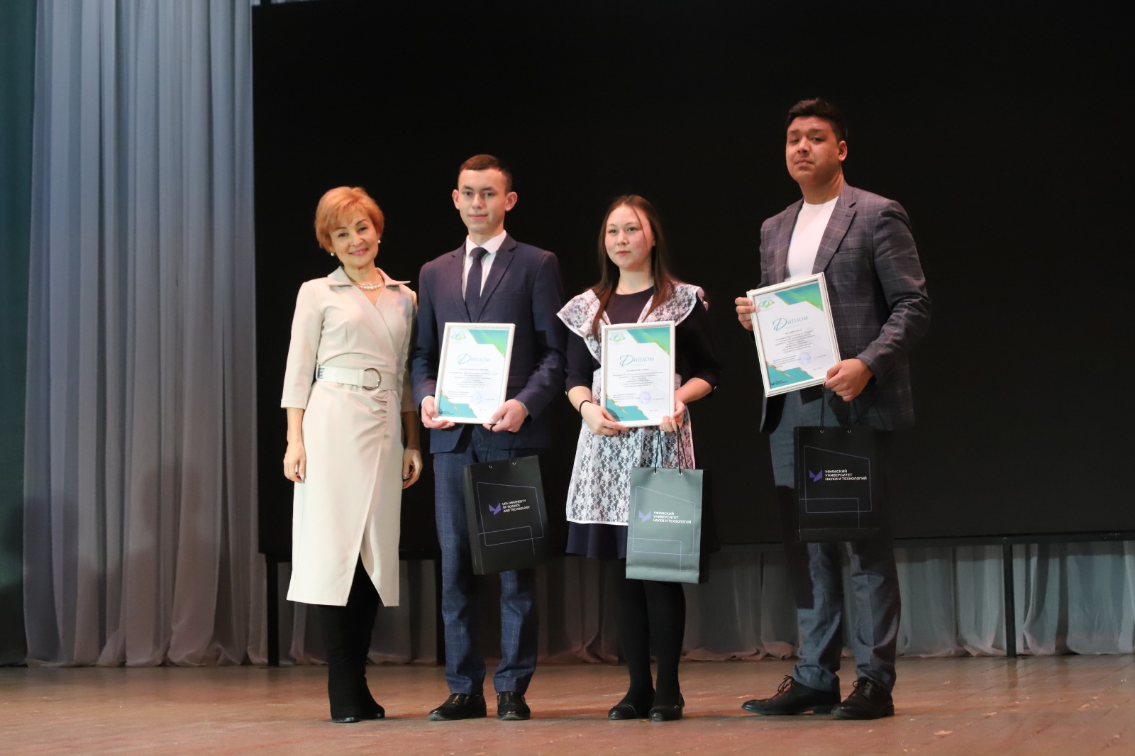 Декан факультета башкирской филологии, профессор Ляйля Хусаинова вручила победителям в номинации «Родной язык – богатство нации» специальные призы БГПУ имени М.Акмуллы.