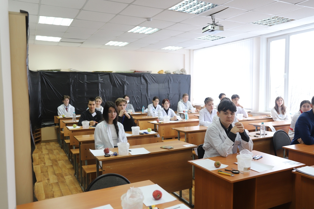 После регистрации и небольшого инструктажа школьники разошлись по лабораториям естественно-географического факультета, где выполняли практические задания по зоологии беспозвоночных и позвоночных животных, морфологии, систематике и анатомии растений, гистологии, анатомии и физиологии человека.