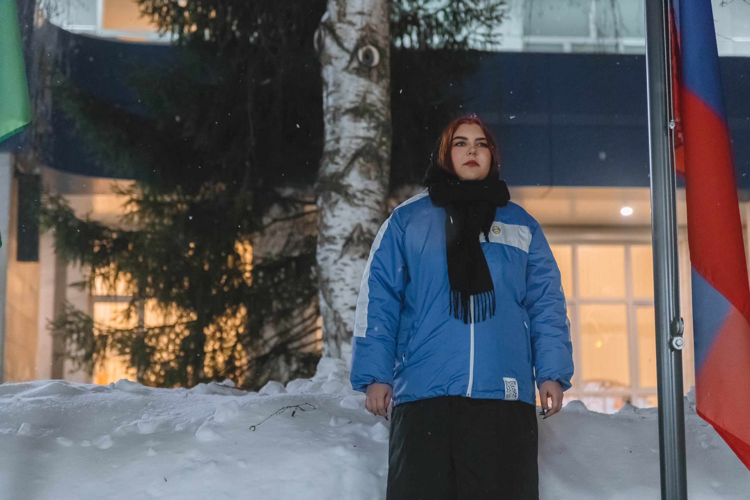Почетное право поднять флаги было предоставлено представителям отряда снежного десанта «Северный ветер» Штаба студенческих отрядов БГПУ имени М. Акмуллы: командиру Кемрану Аскарову и бойцам Алие Галеевой, Илюзе Янбаевой, Камиле Гатиатуллиной.