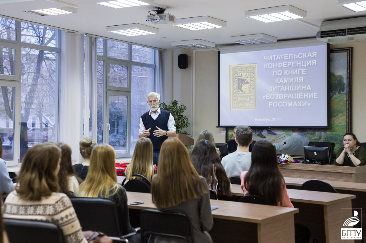 8 ноября 2017 года в Центральном читальном зале библиотеки БГПУ им. М. Акмуллы состоялась читательская конференция по книге известного уфимского писателя и путешественника Камиля Зиганшина «Возвращение росомахи». В конференции приняли участие автор книги, доцент кафедры философии, социологии и политологии Рушания Лукьянова, сотрудник библиотеки Петр Федоров, студенты Института филологического образования и межкультурных коммуникаций и Факультета физической культуры.