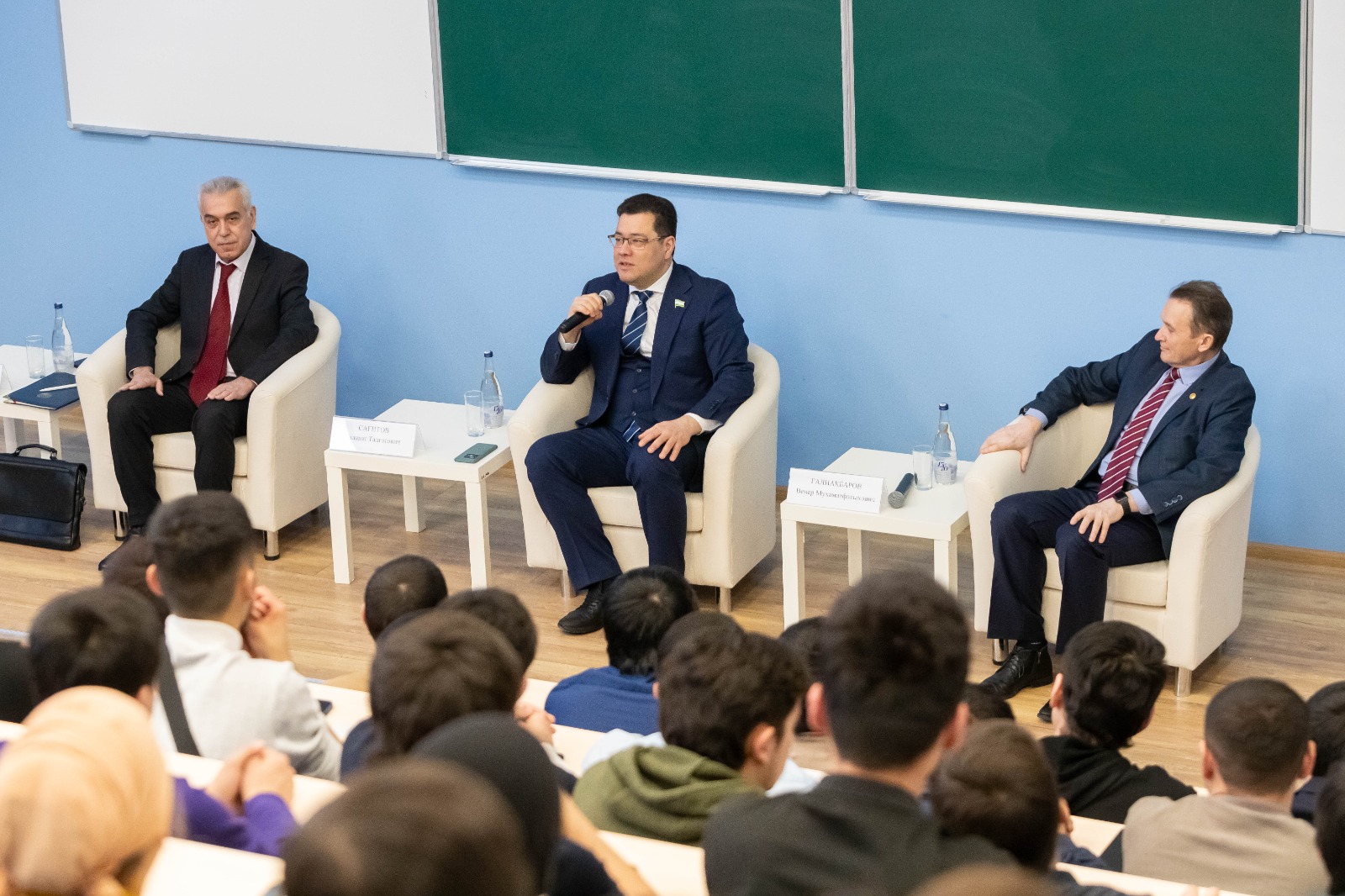 «Россию и Таджикистан исторически связывают общие корни, общая история. Так, например, сегодня в Таджикистане функционируют 5 школ, обучение в которых ведется по образовательным стандартам Российской Федерации и Республики Таджикистан. Совсем скоро вы, получив дипломы Акмуллинского университета, вернетесь на Родину грамотными специалистами. Глядя на вас, будут делать выводы о нашем университете и о России. Впитывайте знания, совершенствуйтесь. Вас будут оценивать и дети, и родители, и это большая ответственность. Уверен, впереди у России и Таджикистана еще больше взаимодействия, дружбы и общения. И работы на благо наших стран», - подчеркнул Салават Сагитов, обращаясь к студентам.
