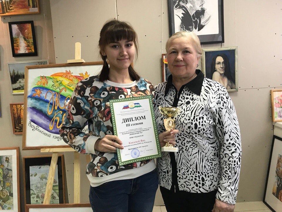 Почетные грамоты в номинации «Буйства красок вернисаж – натюрморт, портрет, пейзаж»: Фазлыахметова Алсу (преподаватель Валеева Э. А.), Баженова Мария (преподаватель Зайлялова Д. Р.).