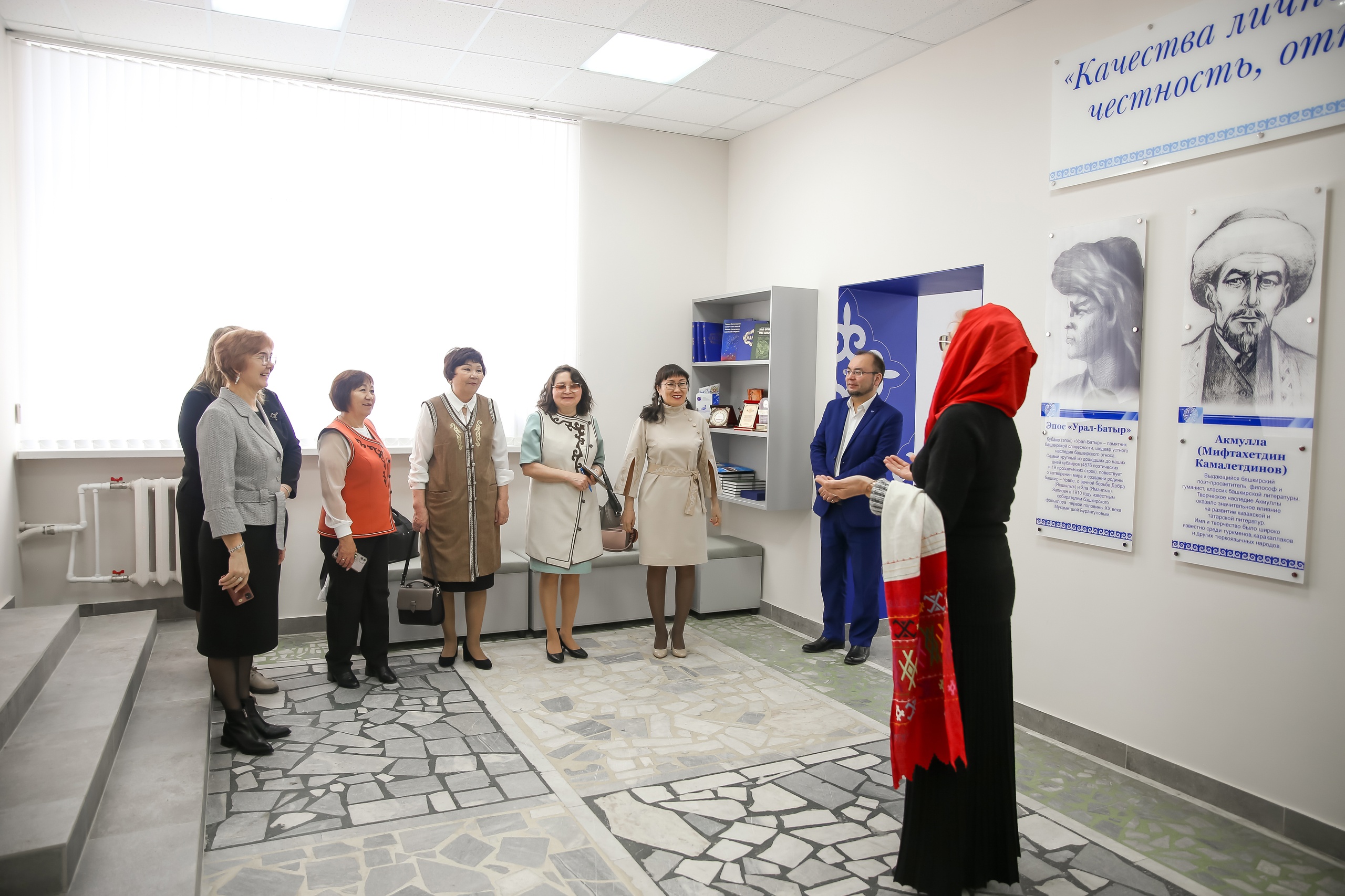 В кабинете «Манас» руководитель Научно-исследовательского центра башкирского фольклора Розалия Султангареева познакомила гостей с содержанием и направленностью кабинета. Педагоги из Алтая отметили близость и сходство башкирских и алтайских эпических памятников, договорились о дальнейшем сотрудничестве.