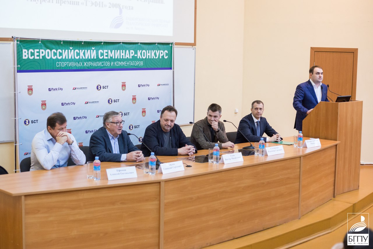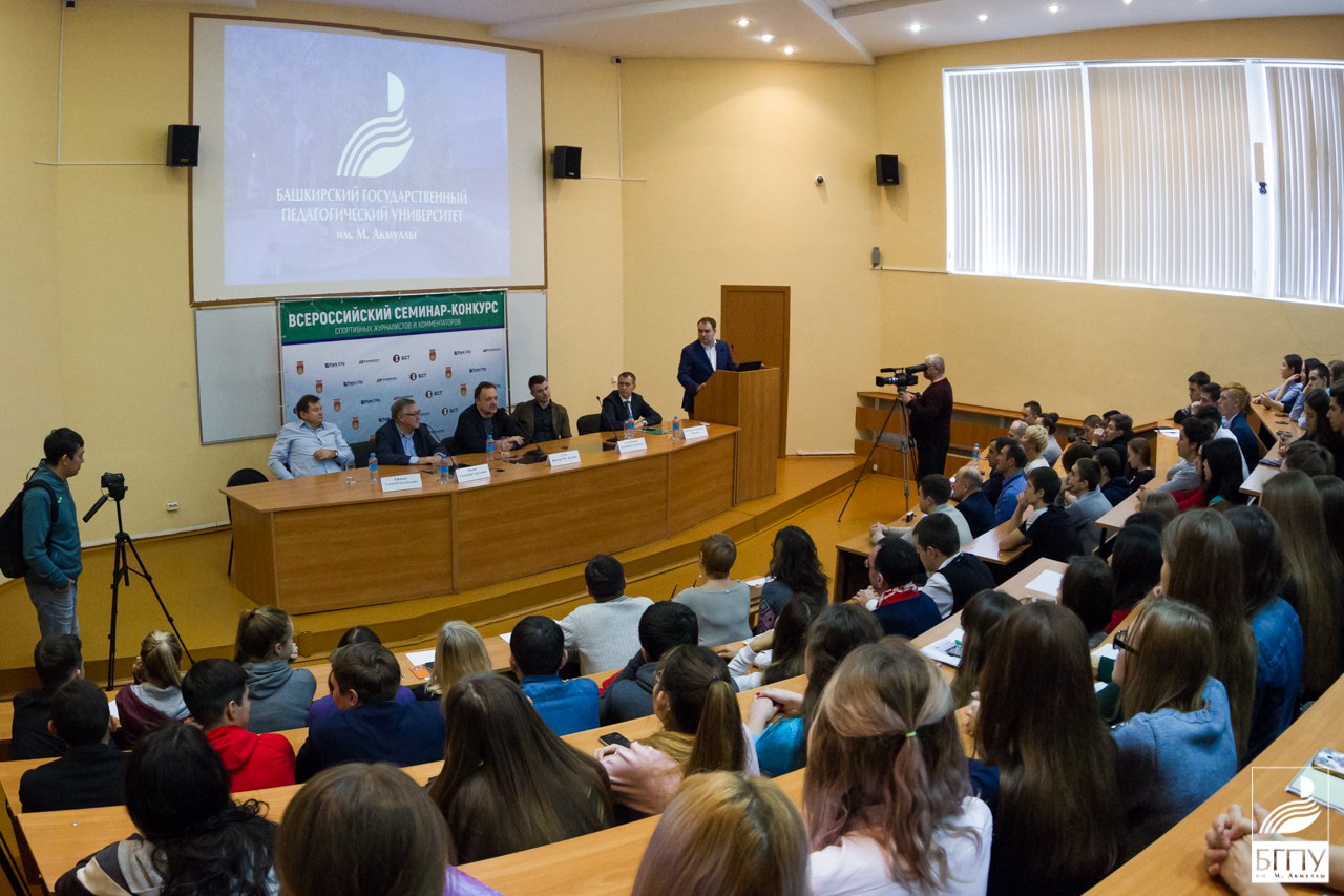 16 ноября в БГПУ им. М. Акмуллы состоялась встреча с ведущими комментаторами федеральных каналов – Геннадий Орлов, Виктор Гусев и Владимир Стогниенко. В Уфе они принимают участие в организованном футбольным клубом «Уфа» и телеканалом «БСТ» Всероссийском семинаре-конкурсе спортивных журналистов и комментаторов, который проводится впервые в стране.
