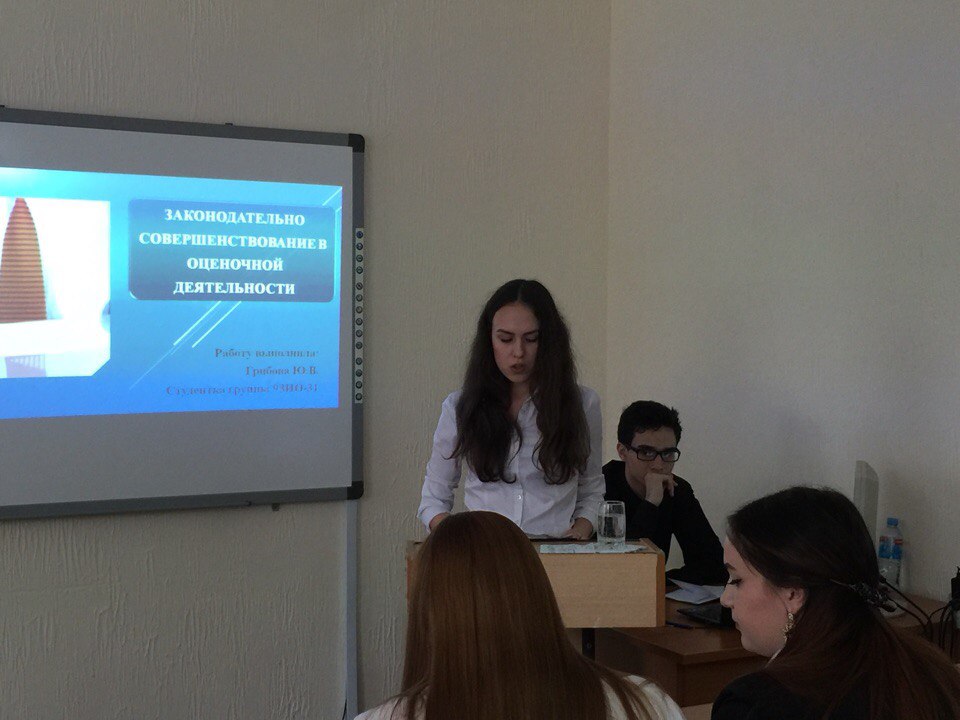 Студенты выпускных групп специальности «Земельно-имущественные отношения» представили на конференции свои доклады на различные темы, связанные с историей оценочной деятельности, с современными проблемами развития оценочной деятельности, правовыми вопросами и их решением, с квалифицированной деятельностью оценщиков и их помощников. Будущие выпускники в своих выступлениях показали, что оценочная  деятельность  -  это  не  столько  предпринимательская деятельность  в  собственных  интересах,  сколько  профессиональная деятельность  в  общественных  интересах  (особенно  в  случаях  обязательной  оценки); что развитие  оценочной  деятельности  в  России  должно  быть  тесно увязано с концепцией развития страны, поэтому политические и социально-экономические изменения в мире существенно влияют на профессию оценщика.
