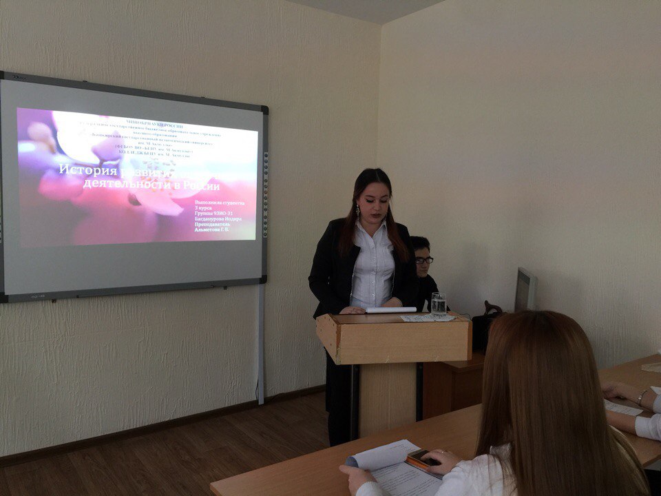 21 ноября 2017 года в Колледже БГПУ им. М. Акмуллы состоялась научно-практическая конференция «Современные проблемы и перспективы развития оценочной деятельности в России», посвященная Дню оценщика. Целью данного мероприятия было определение актуальных вопросов регулирования оценочной деятельности и  перспектив ее развития в Российской Федерации. На конференцию были приглашены: директор ООО Финэкспертоценка», сертифицированный оценщик высшей категории, квалифицированный оценщик объектов 1 категории сложности, эксперт, судебный эксперт – Гайфуллина Лия Радиковна; преподаватель УГАТУ, оценщик объектов интеллектуальной собственности -  Лукманова Лилия Мидхатовна; выпускники Колледжа БГПУ 2017 г., квалифицированные помощники оценщиков, студенты БГПУ им. М. Акмуллы: Абсалямова Аделина, Агаркова Светлана, Гимаев Рафик.