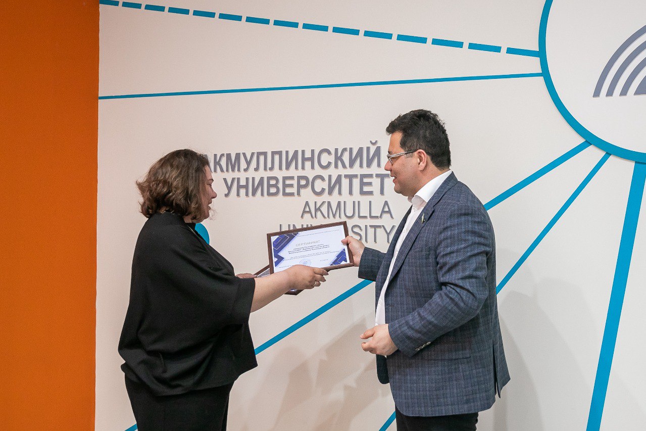 В завершении встречи ректор Акмуллинского университета Салават Сагитов вручил гостье и коллективу Русановской школы сертификаты на обучение по дополнительным профессиональным программам повышения квалификации.