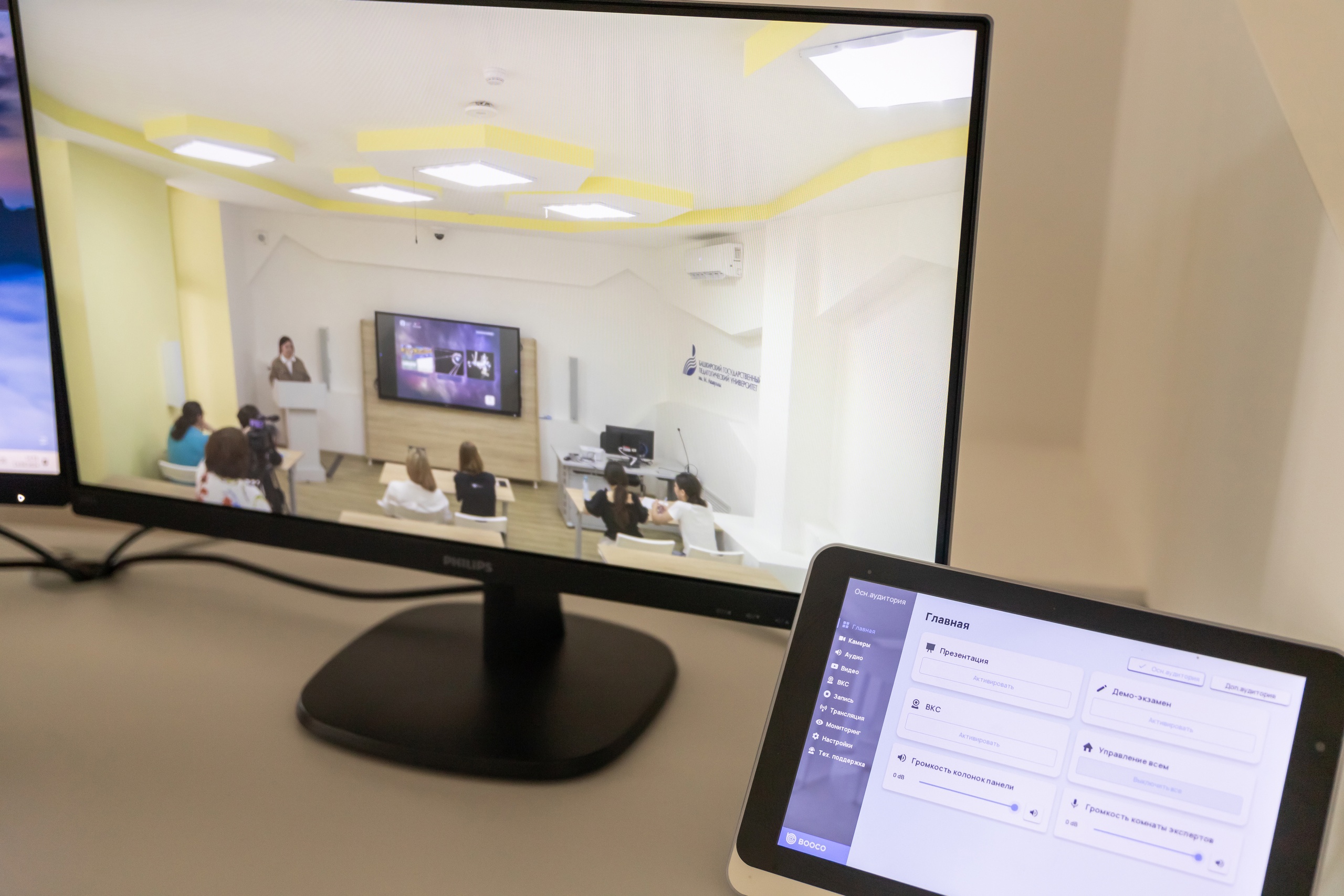 В состав экзаменационной комиссии у входят три человека, в числе которых обязательно эксперт из другого вуза или представитель организации- работодателя. Экзаменаторы находятся в соседнем кабинете, откуда через зеркало Гезелла и с помощью видеотехники наблюдаются за ходом урока.  Доцент кафедры педагогики Людмила Гирфанова принимает демоэкзамены уже второй год.