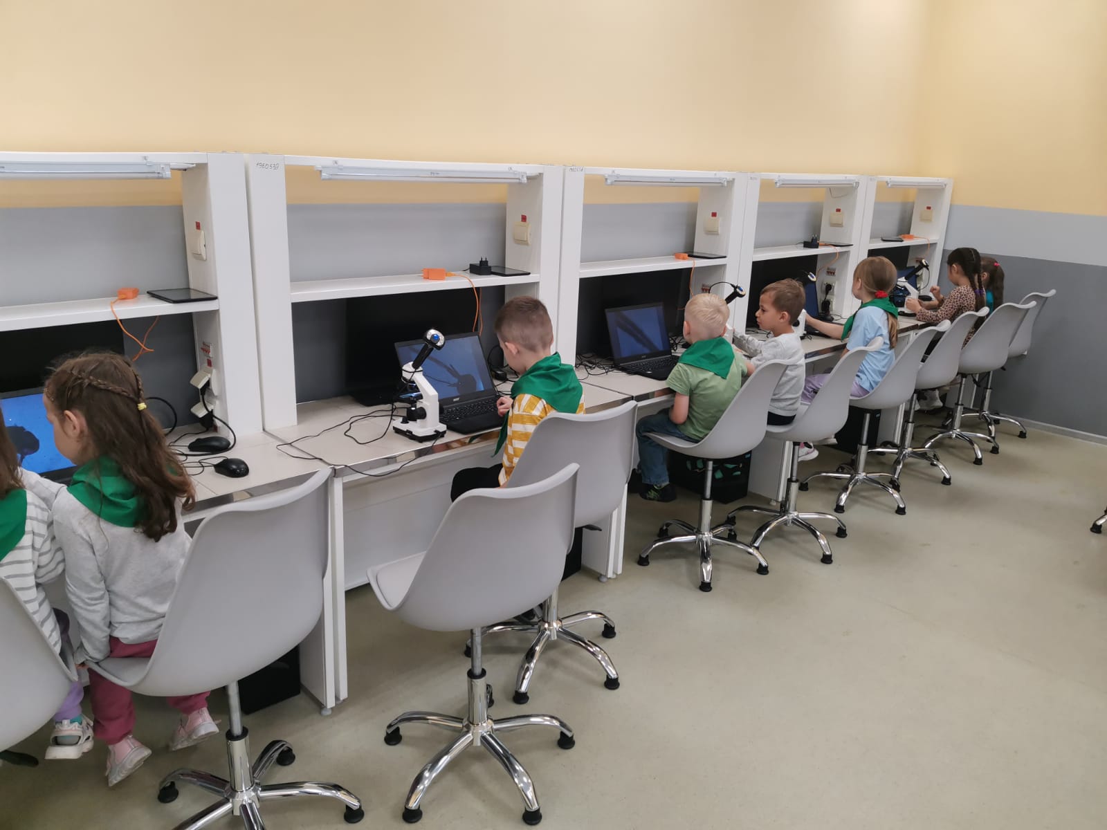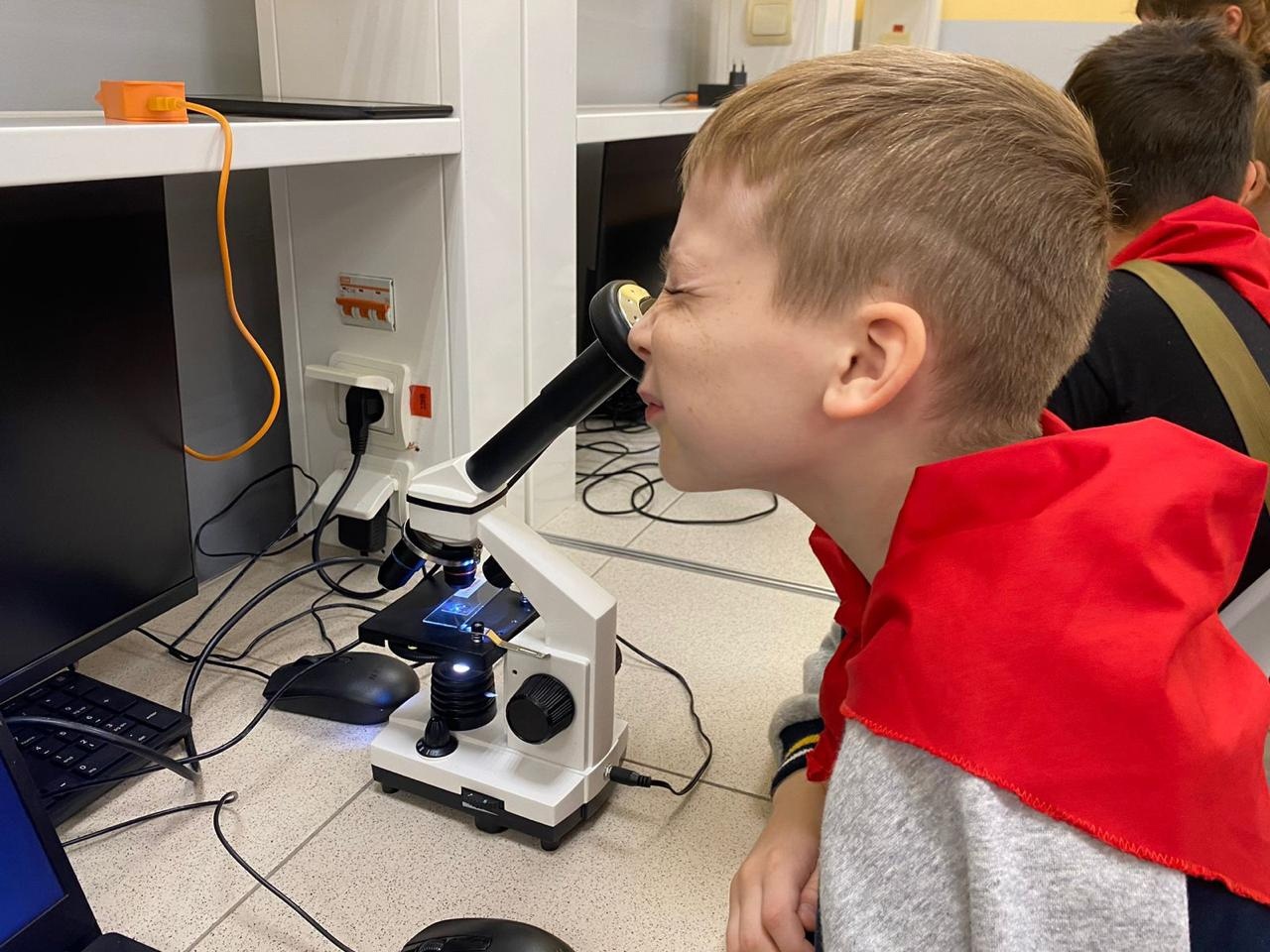 Сотрудники Кванториума познакомили ребят с техническими средствами, позволяющими определять влажность и температуру воздуха, pH-среды, также научили работать на цифровых микроскопах.