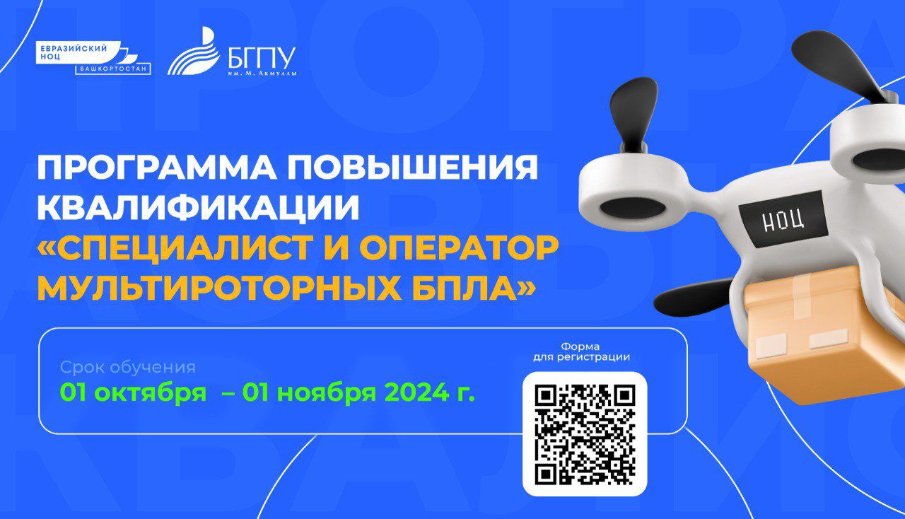 Управляющая компания научно-образовательного центра Республики Башкортостан совместно с Акмуллинским университетом организует программу повышения квалификации «Специалист и оператор мультироторных БПЛА».