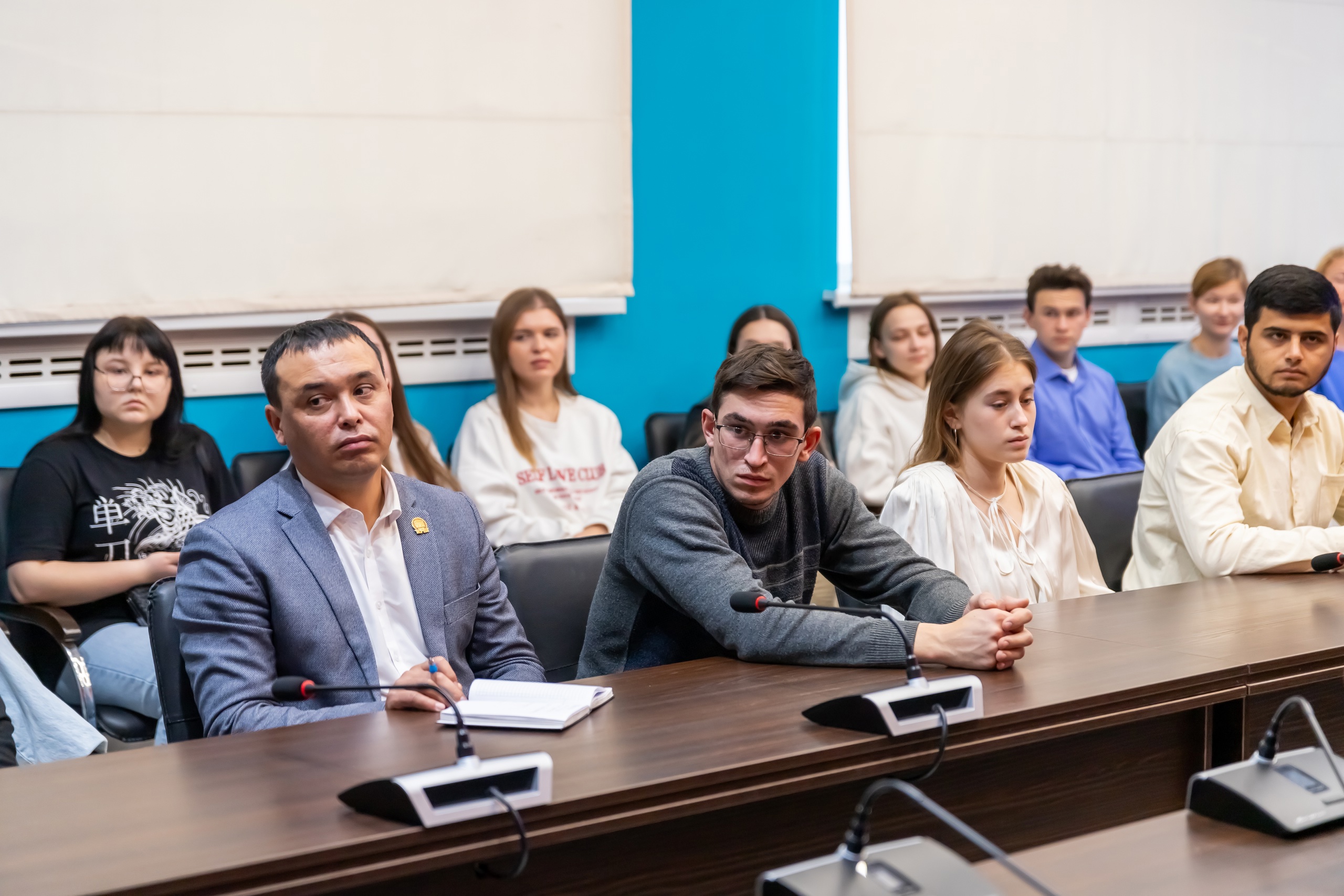 Активисты студенческих спортклубов активно задавали вопросы гостям. Обсуждались перспективы развития фиджитал-спорта, вопросы вовлечения молодежи в занятия спортом и необходимости развития спортивных сообществ в вузах, поддержки школьного спорта, взаимодействия спортивных и других общественных организаций  и др.