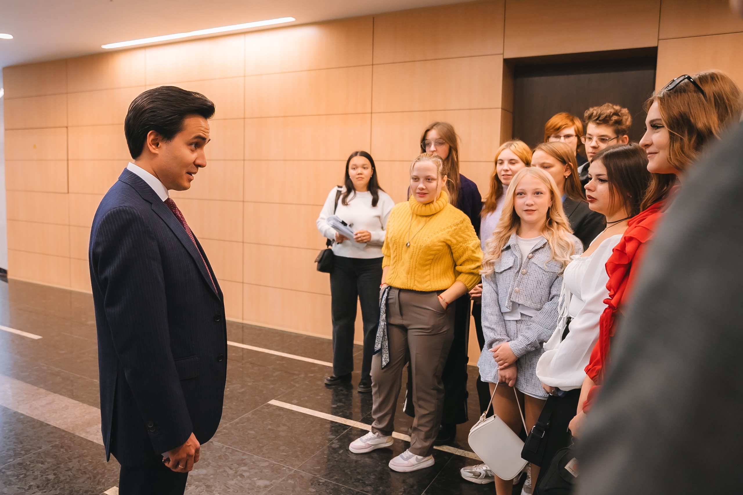 Директор Госоркестра Республики Башкортостан Артур Назиуллин тепло встретил гостей и поделился с ребятами впечатлениями от своих поездок  Луганск и рассказал о премьере Дмитрия Крюкова: