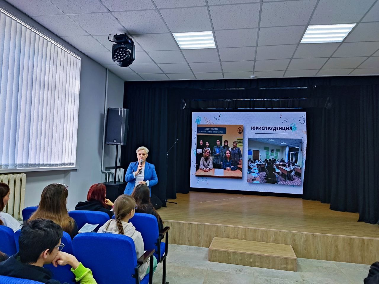 Началась встреча в театральной студии, где перед гостями выступили директор Колледжа Анна Таболина и руководитель Центра педагогических компетенций Нина Набиулина. Анна Николаевна рассказала о ключевых моментах поступления в колледж Акмуллинского университета, сроках приемной кампании и проведения вступительных испытаний. Нина Геннадьевна представила школьникам и педагогам специальности, по которым осуществляется подготовка.