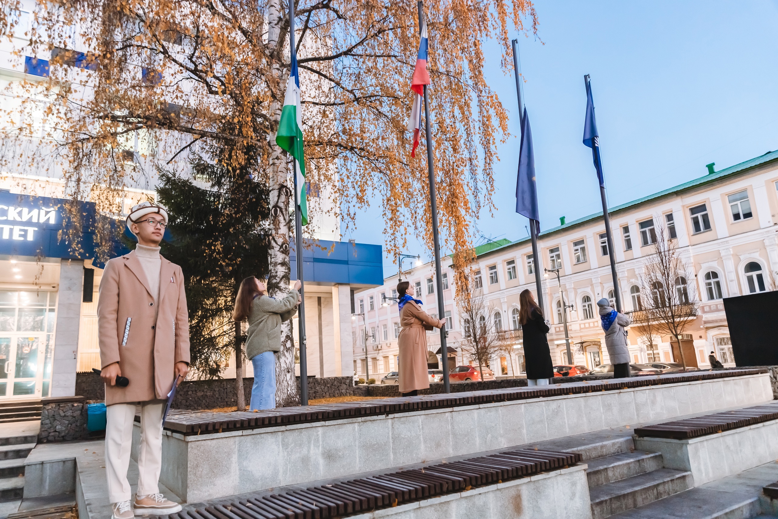 28 октября в Башкирском государственном педагогическом университете им. М. Акмуллы состоялась традиционная еженедельная церемония поднятия флагов. В ней приняли участие студенты и преподаватели Института филологического образования и межкультурных коммуникаций университета.