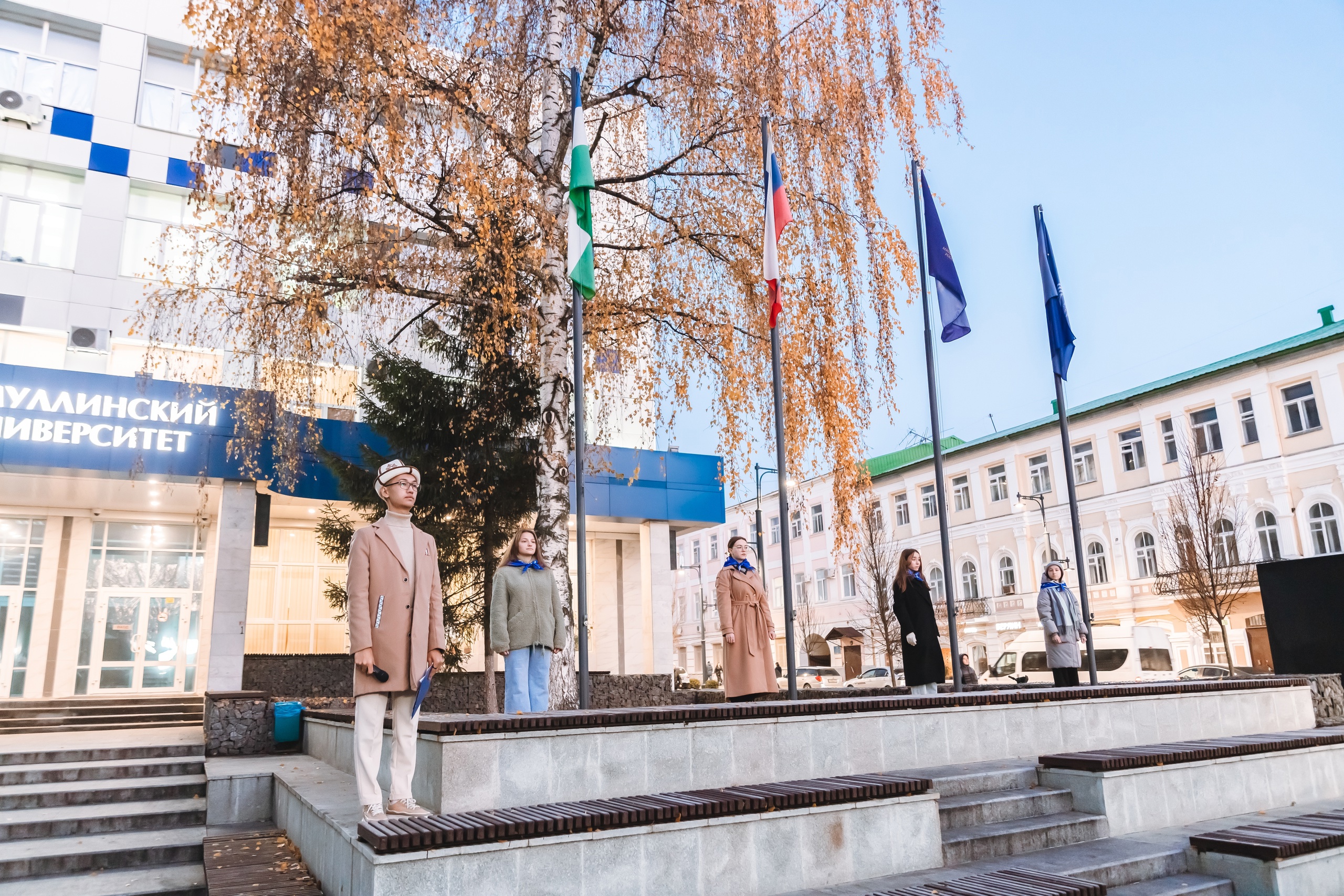 Студенты-филологи подняли флаги перед Акмуллинским университетом