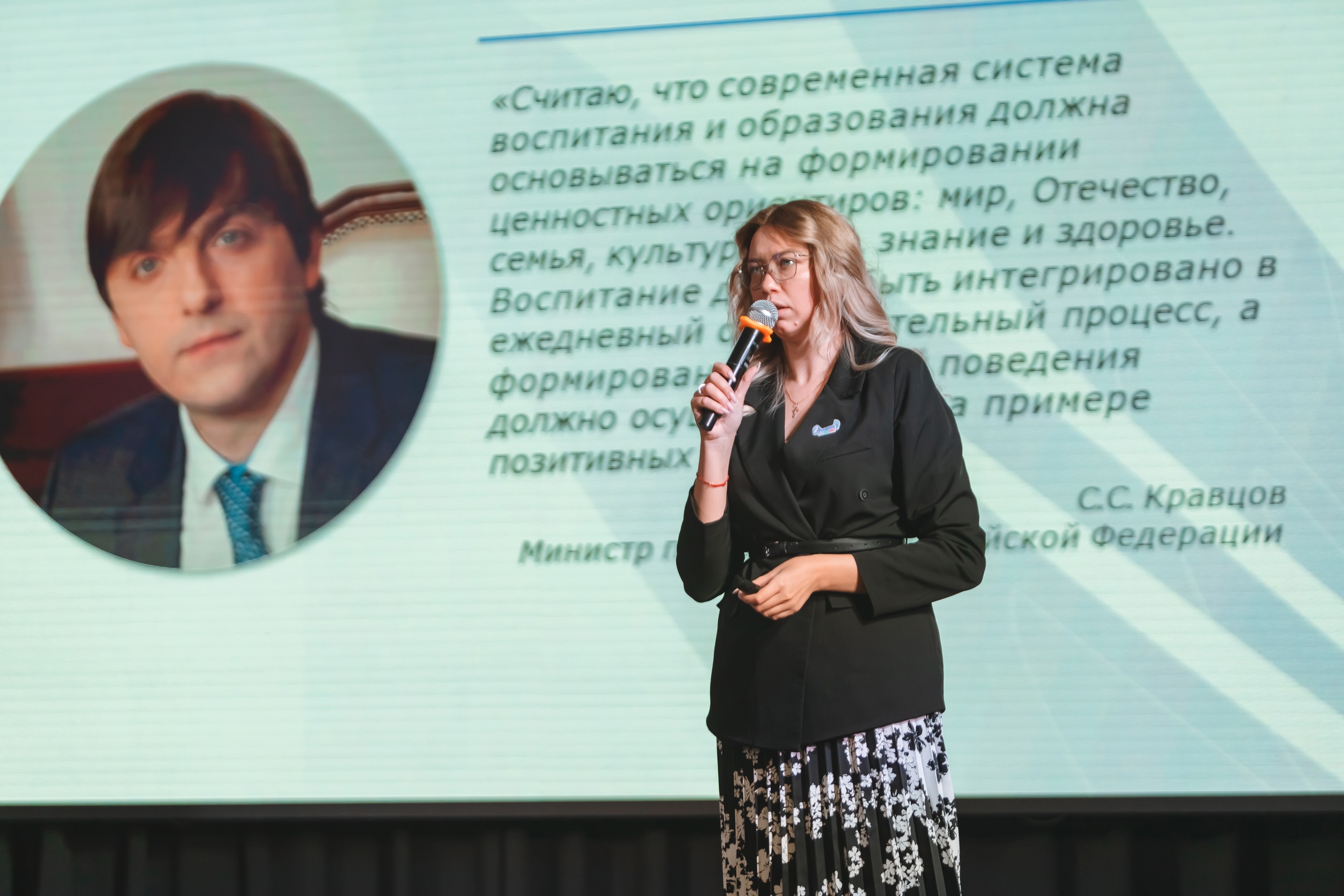 «Здесь собрались те, кто уже сегодня формирует будущее поколение патриотов, которые будут строить Россию завтра. То, что вы делаете, чрезвычайно важно для каждого ребенка по отдельности и для всей нашей страны в целом. Спасибо вам за ваш труд, горящие глаза, энтузиазм, который вы несете с собой! Желаю вам пополнить багаж знаний, посмотреть друг на друга, увидеть какие-то интересные наработки, изюминки, обязательно познакомиться с множеством коллег и в дальнейшем с ними сохранять отношения, советоваться, встречаться!»