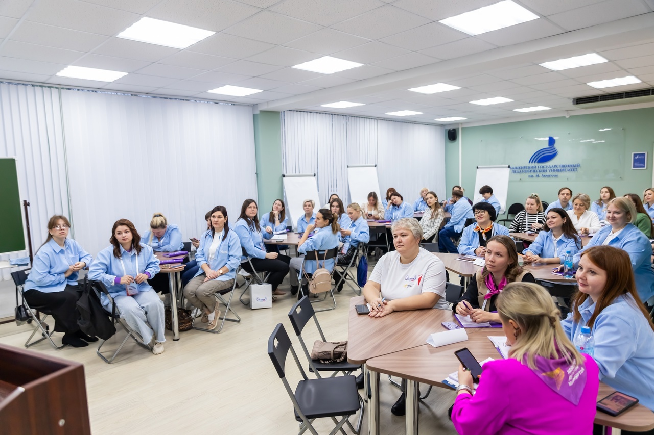 «Приятно оказаться в стенах Акмуллинского университета, так как сама являюсь выпускницей башкирского педвуза. Я советник директора,  до этого была учителем начальных классов. В нашей школе в 2022 году в программе «Орлята России» участвовали только два класса, а в том году запустили полностью по всем классам начальной школы.