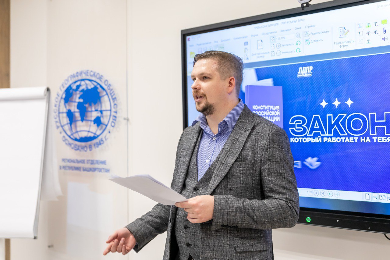 Перед ребятами выступил Николай Курзенков, председатель комиссии по бюджетной, налоговой, инвестиционной политике и имущественным отношениям Молодёжной общественной палаты при Государственном собрании - Курултае Республики Башкортостан, руководитель Молодёжной организации ЛДПР в Республике Башкортостан.