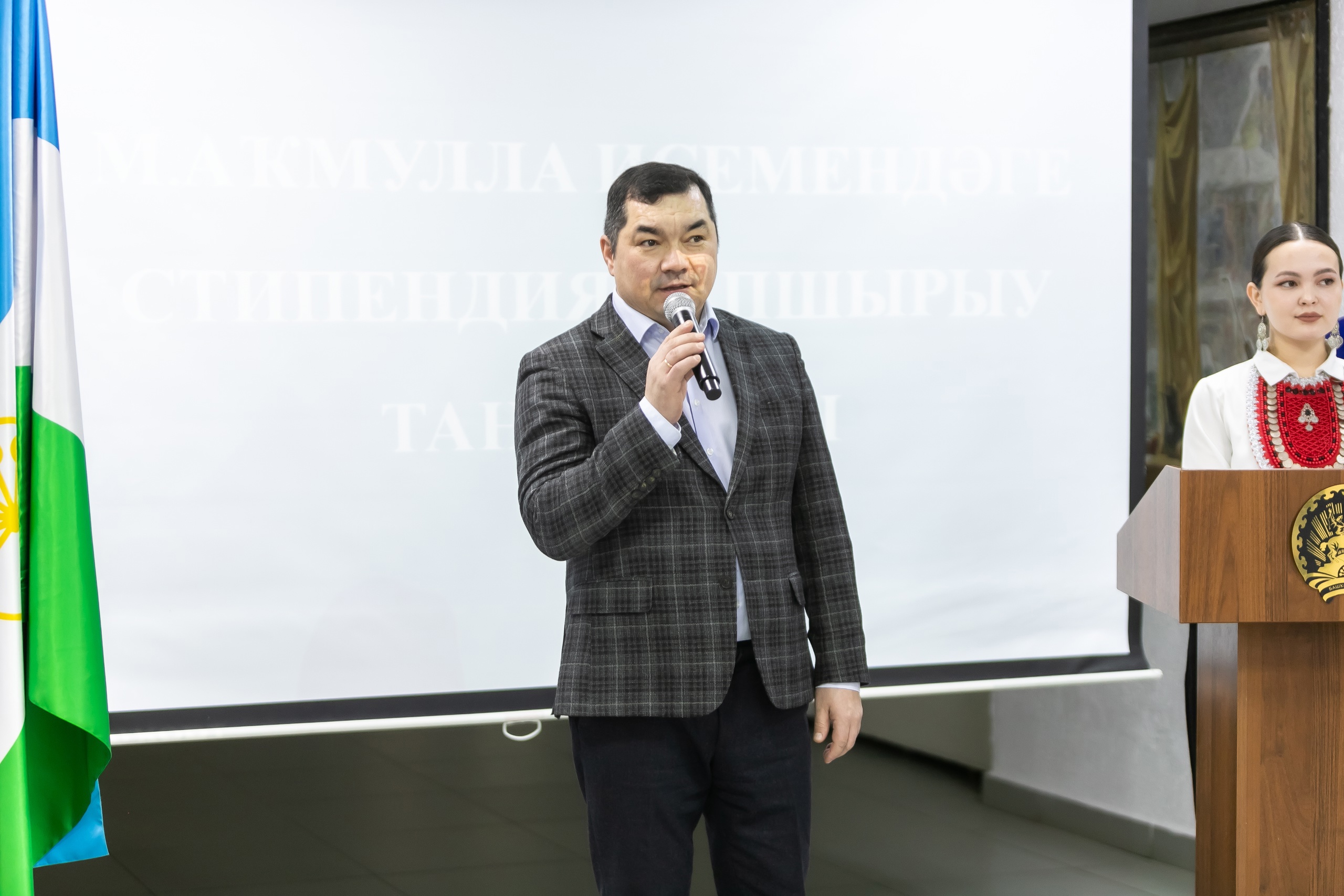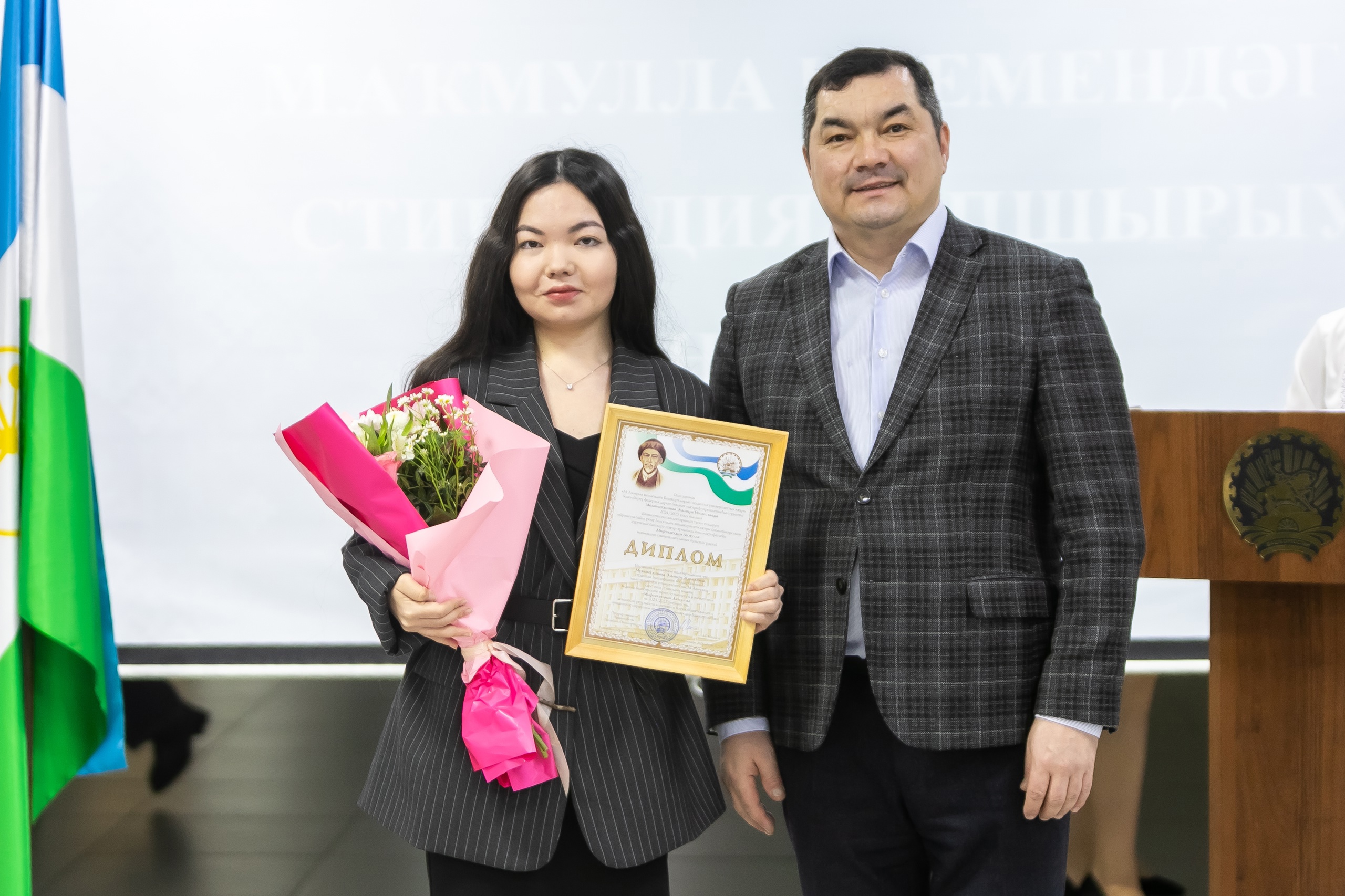 В Белом зале Акмуллинского университета и.о. первого заместителя Премьер-министра Правительства Республики Башкортостан Урал Кильсенбаев вручил дипломы стипендиатам имени Мифтахетдина Акмуллы. 14 студентов колледжей и вузов республики получили именную стипендию за высокие результаты в учебной и научной деятельности, связанной с изучением родных языков народов Башкортостана.