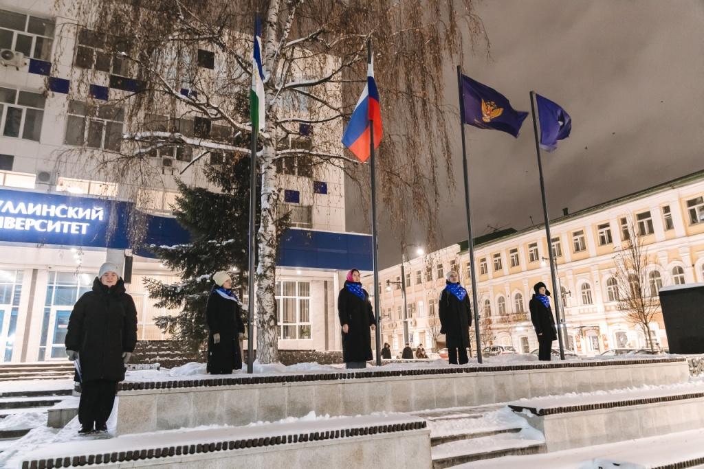 16 декабря на площади перед Акмуллинским университетом состоялась еженедельная церемония поднятия флагов. Участниками ее стали студенты и преподаватели факультета психологии.