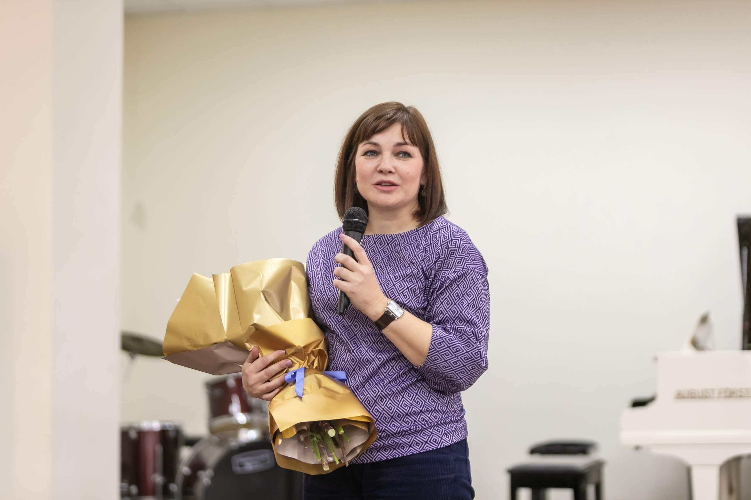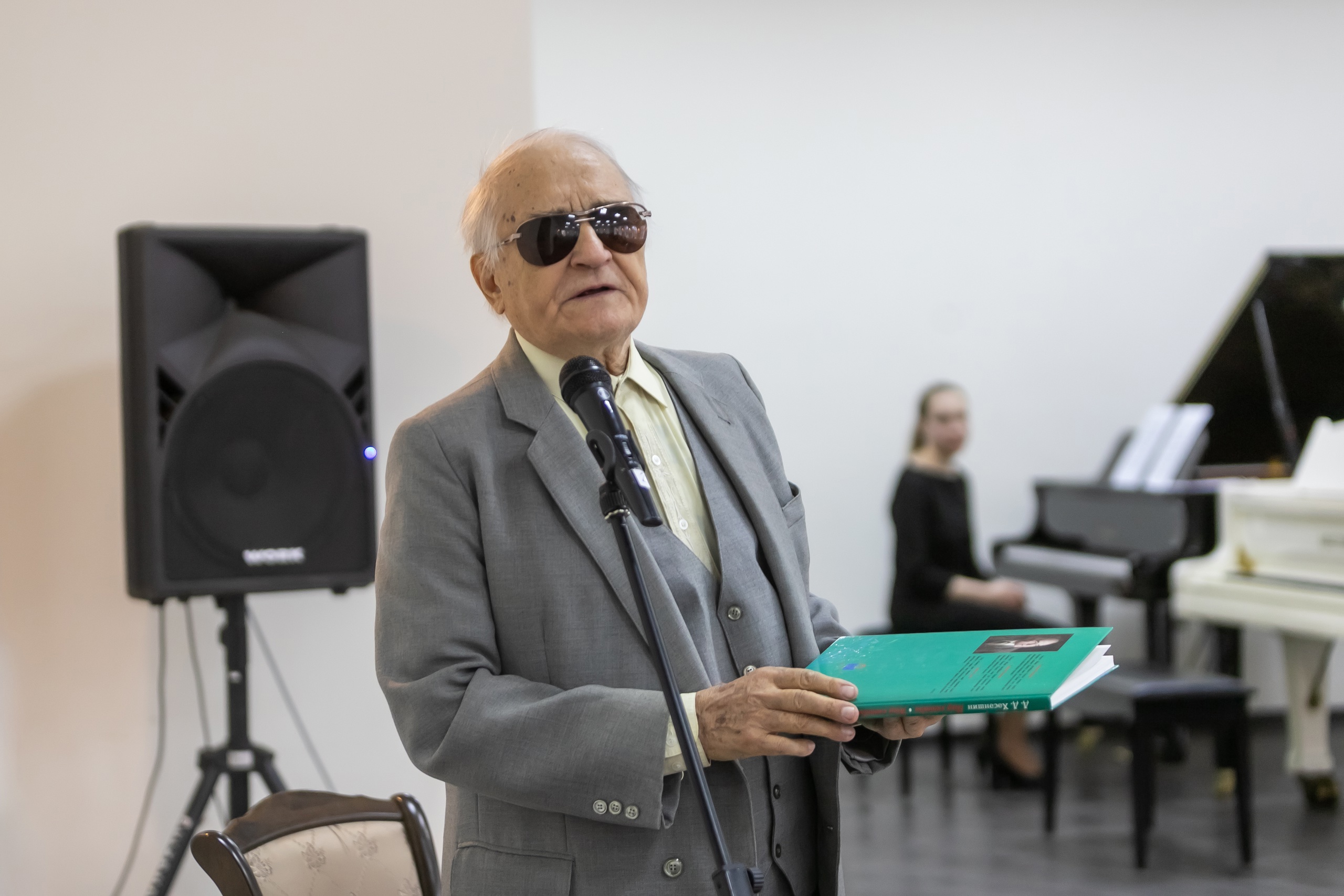 «Мы бережно храним сборник детских песен, который Вы когда-то подарили колледжу. Вы, наверное, знаете, что сейчас наш колледж – единственный в республике, который готовит учителей музыки. И те традиции, которые были заложены еще Вашими преподавателями, сейчас продолжаются и передаются из поколения в поколение. Мы желаем Вам от всего нашего коллектива, чтобы Вы как можно больше были с нами, радовали нас своей музыкой, своим творчеством», – сказала Анна Таболина. Она подарила Данилу Хасаншину на память пейзаж, написанный студентами колледжа.