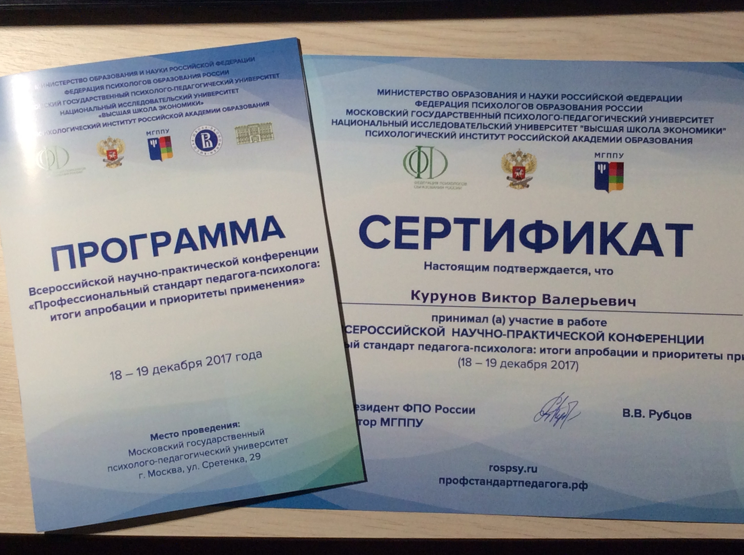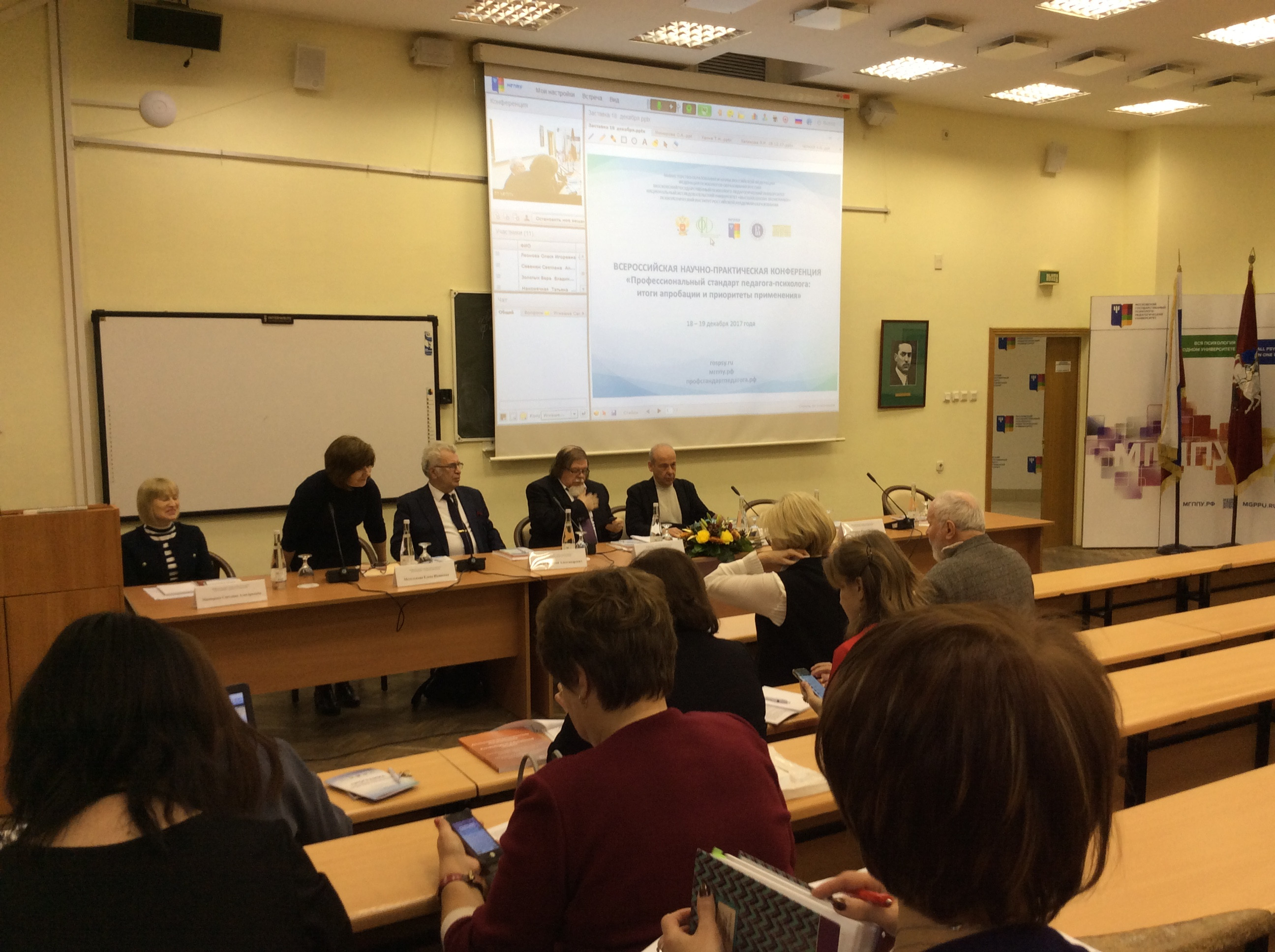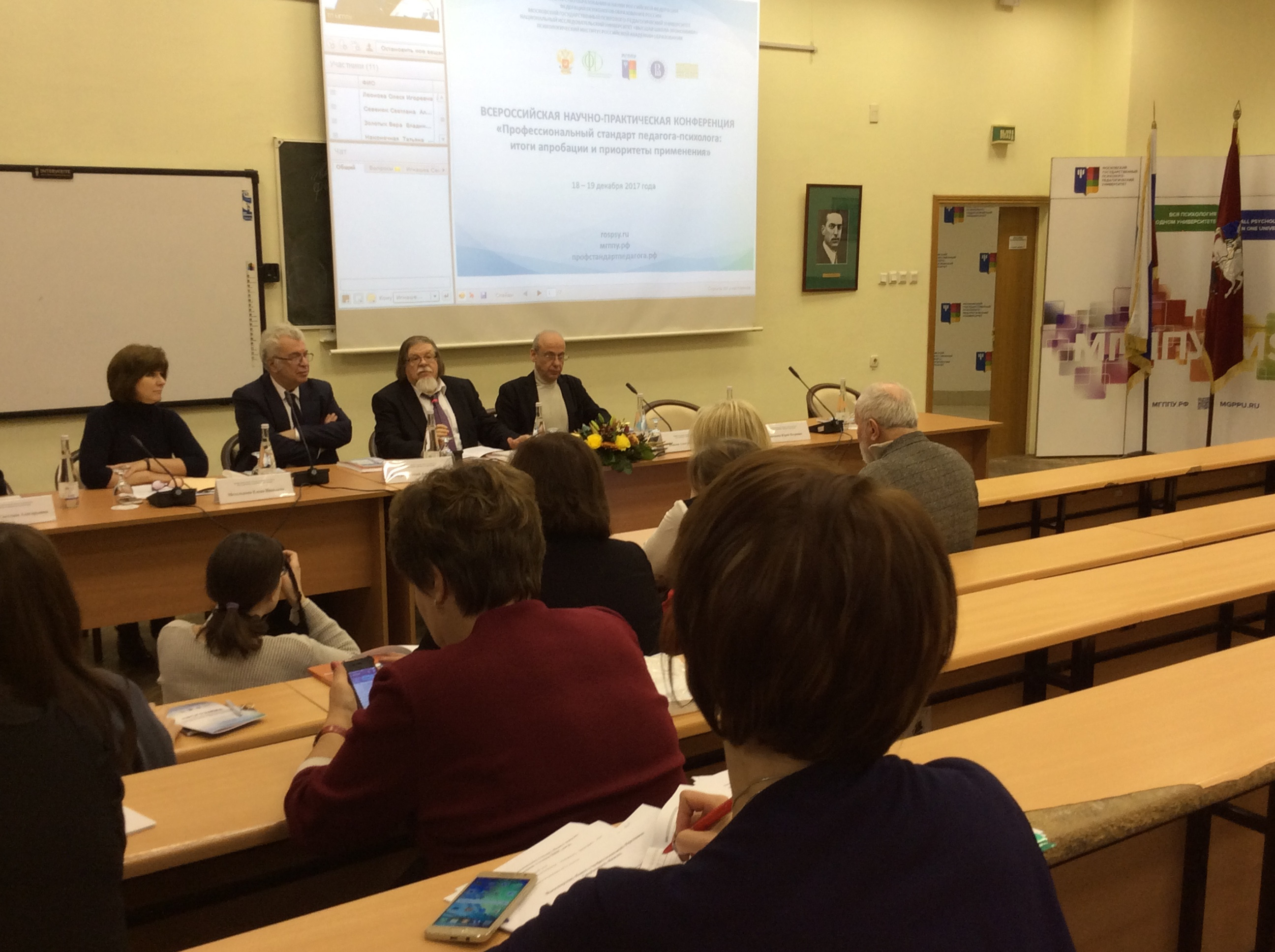 Декан факультета психологии БГПУ им. М. Акмуллы, член комиссии по сопровождению применения профессиональных стандартов работников образования и социальной сферы ФУМО ВО "Образование и педагогические науки" Виктор Курунов принял участие в работе Всероссийской научно-практической конференции "Профессиональный стандарт педагога-психолога: итоги апробации и приоритеты применения", которая проводилась  18-19 декабря на базе Московского государственного психолого-педагогического университета под эгидой Министерства образования и науки РФ, Федерации психологов образования России, Национального исследовательского университета "Высшая школа экономики" и Психологического института РАО. С пленарными докладами выступили ведущие учёные страны.