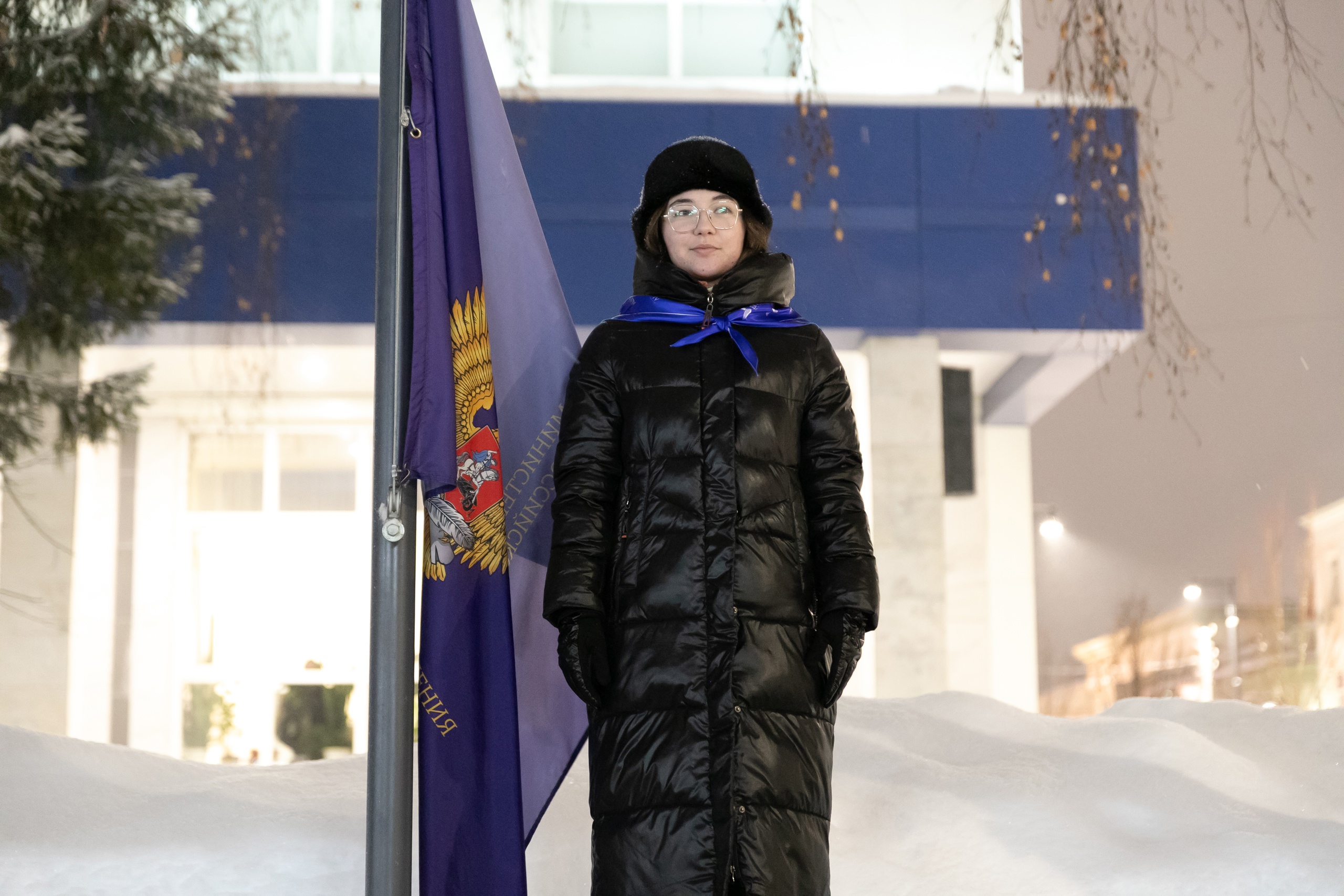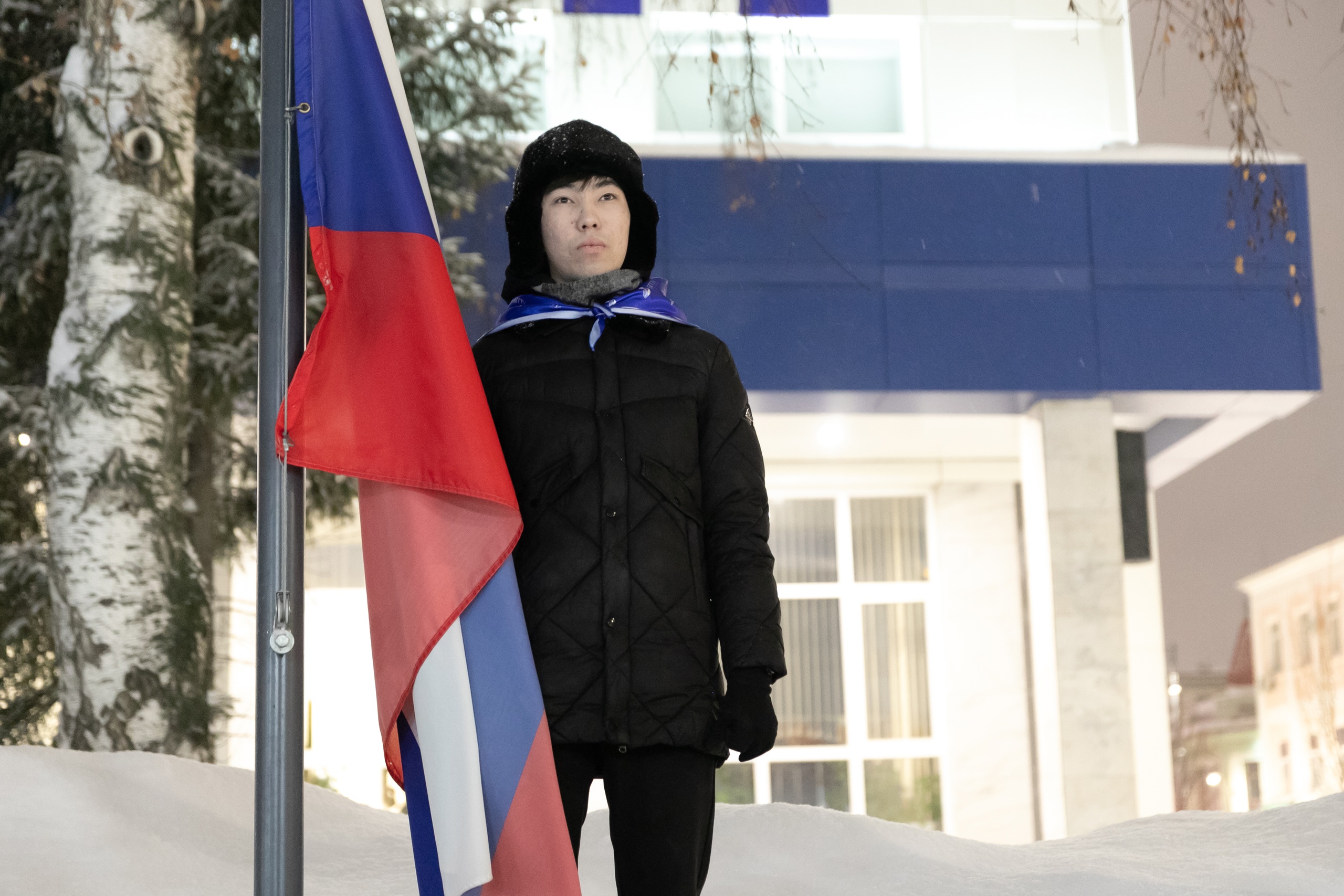 Сегодня почетное право поднять флаги было предоставлено студентам первого курса ФБФ, имеющим особые достижения в научной и учебной деятельности, а также сдавшим зимнюю сессию на «отлично»: