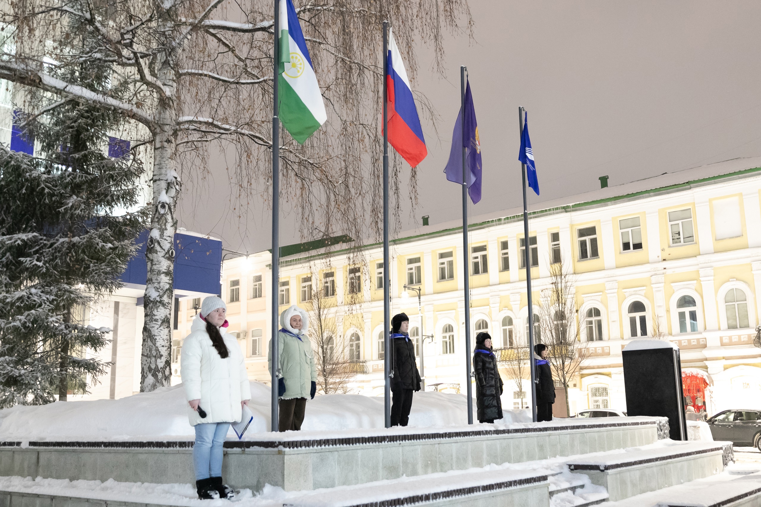 20 января на площади перед Акмуллинским университетом состоялась традиционная торжественная церемония поднятия государственных флагов Российской Федерации, Республики Башкортостан, флагов Министерства просвещения Российской Федерации и Акмуллинского университета. В ней приняли участие студенты и преподаватели факультета башкирской филологии БГПУ имени М. Акмуллы.