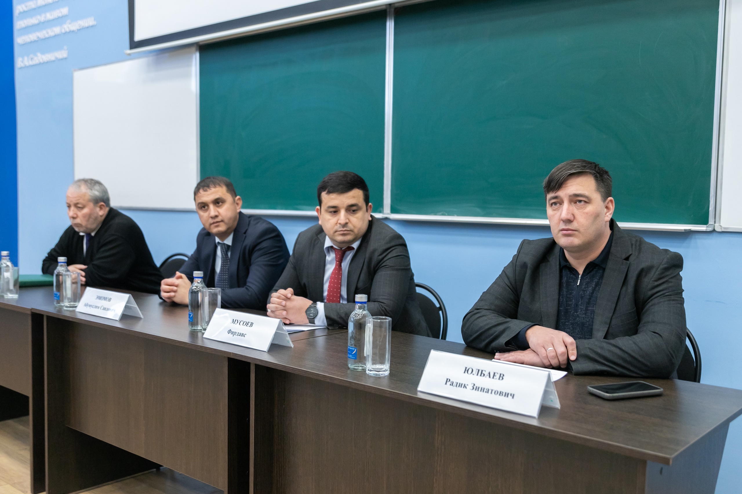 Гостей приветствовал проректор по молодежной политике и международным связям Радик Юлбаев. Он поблагодарил представителей консульства за визит и отметил, что в БГПУ им. М. Акмуллы по программам СПО, бакалавриата, магистратуры и аспирантуры учатся 189 выходцев из Таджикистана.